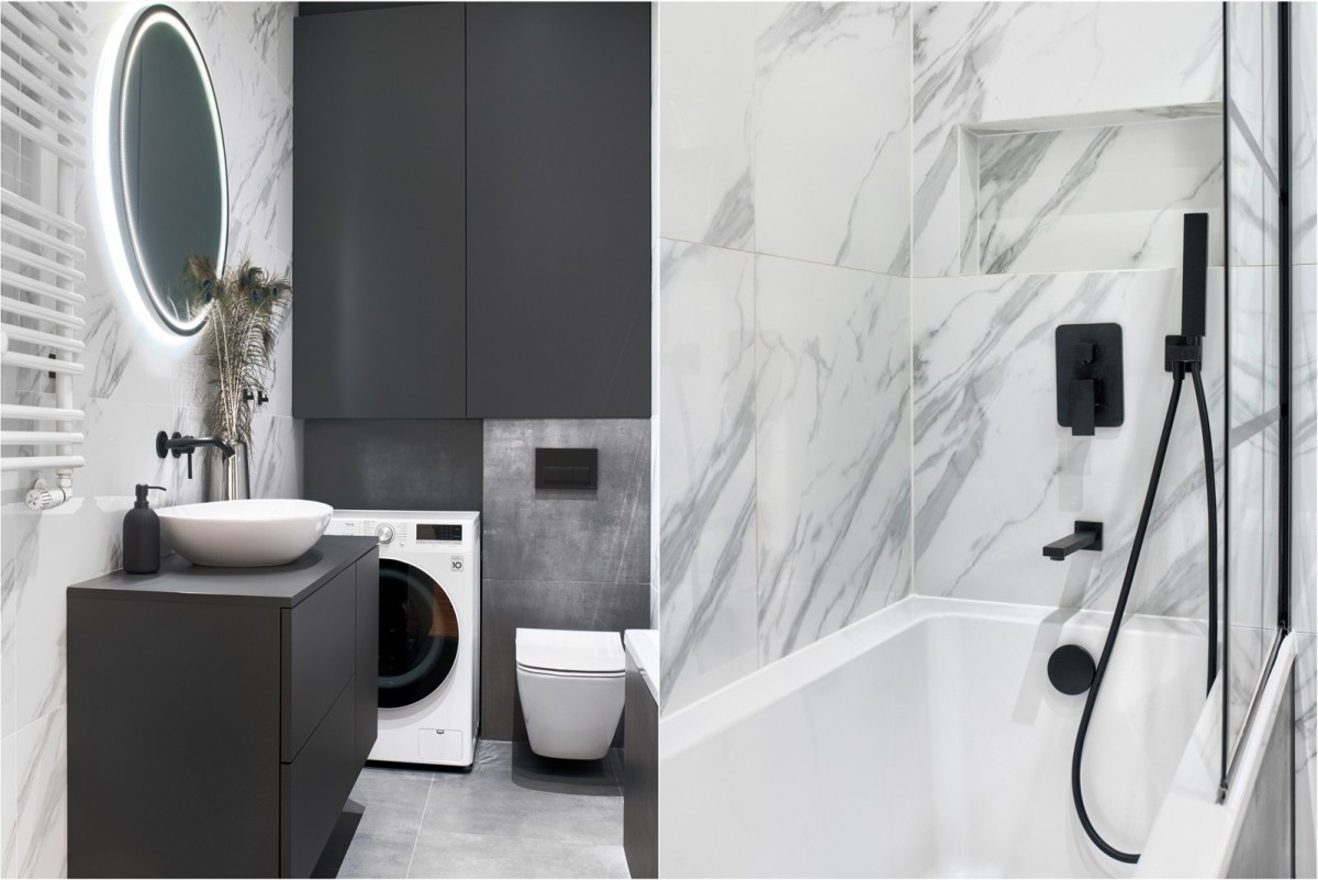 Na podłodze położona jest deska barlinecka. Zabudowa meblowa wykonana została na wymiar.