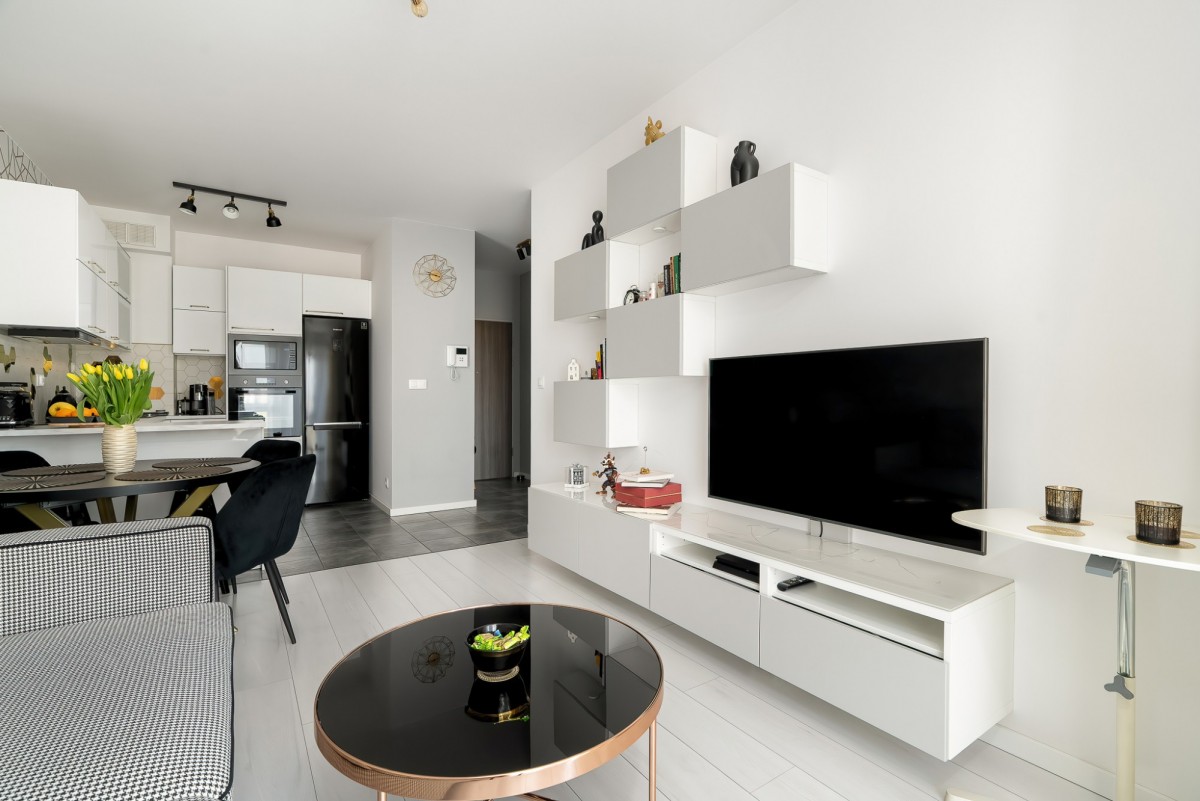 Ten nowoczesny apartament przy ul. Starołęckiej w Poznaniu spełni oczekiwania osób ceniących komfort, design i bliskość natury, a jednocześnie szybki dojazd do centrum miasta.