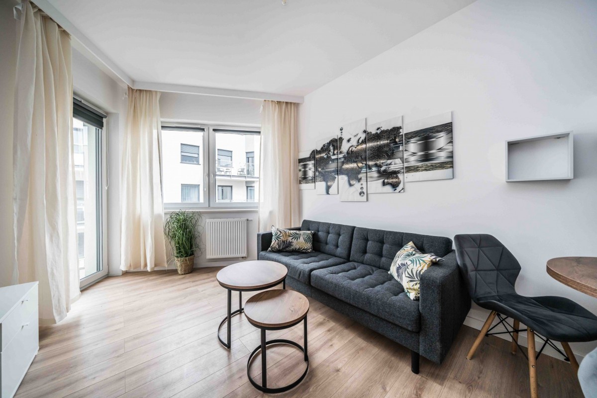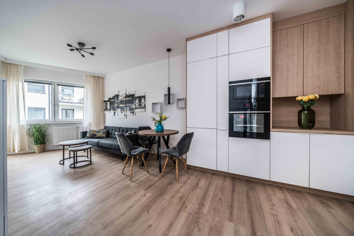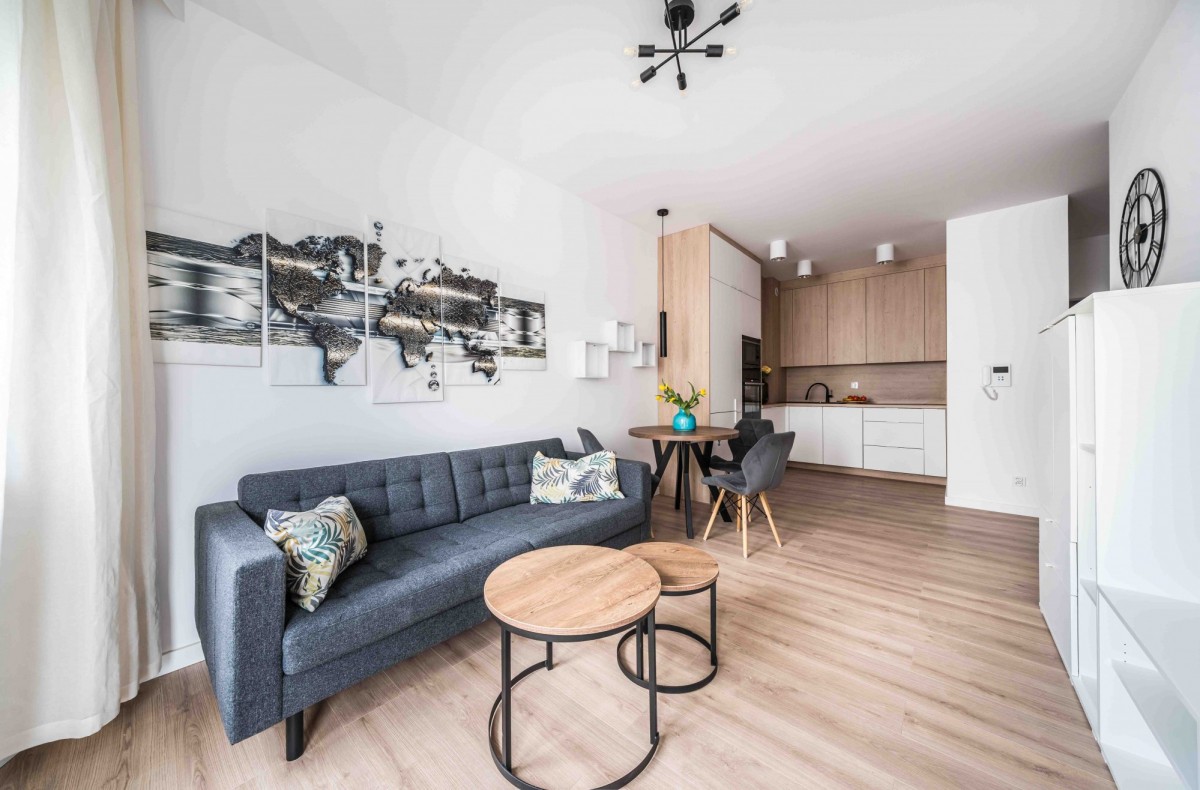 Mieszkanie nowe, całkowicie wyposażone w meble i sprzęt AGD — gotowe do wprowadzenia się.