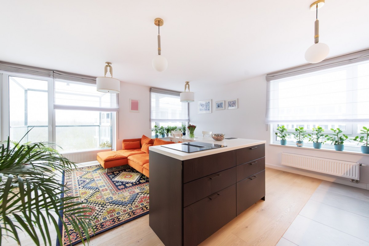 • nowoczesny aneks kuchenny z pełnym AGD, płyta indukcyjna z pochłaniaczem