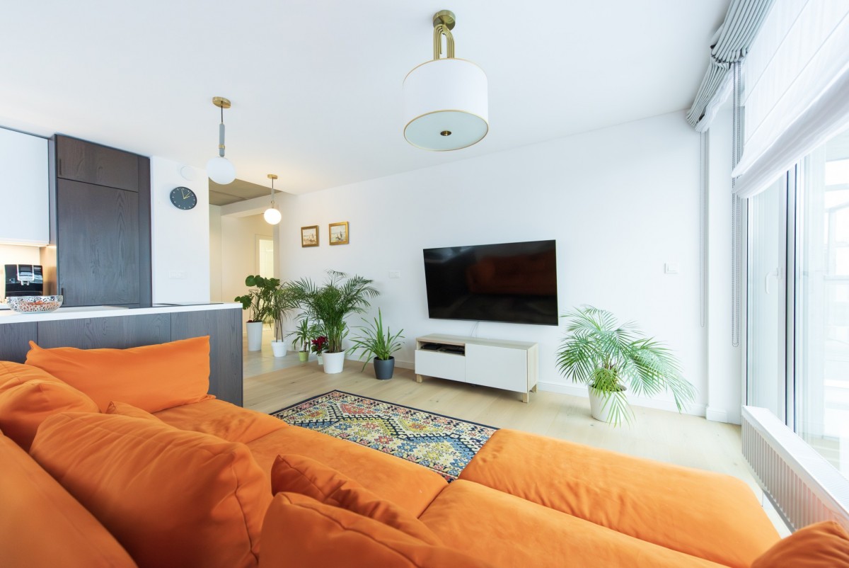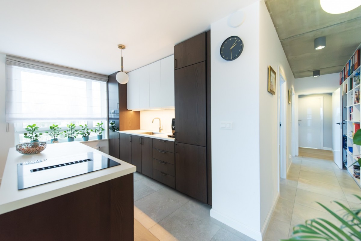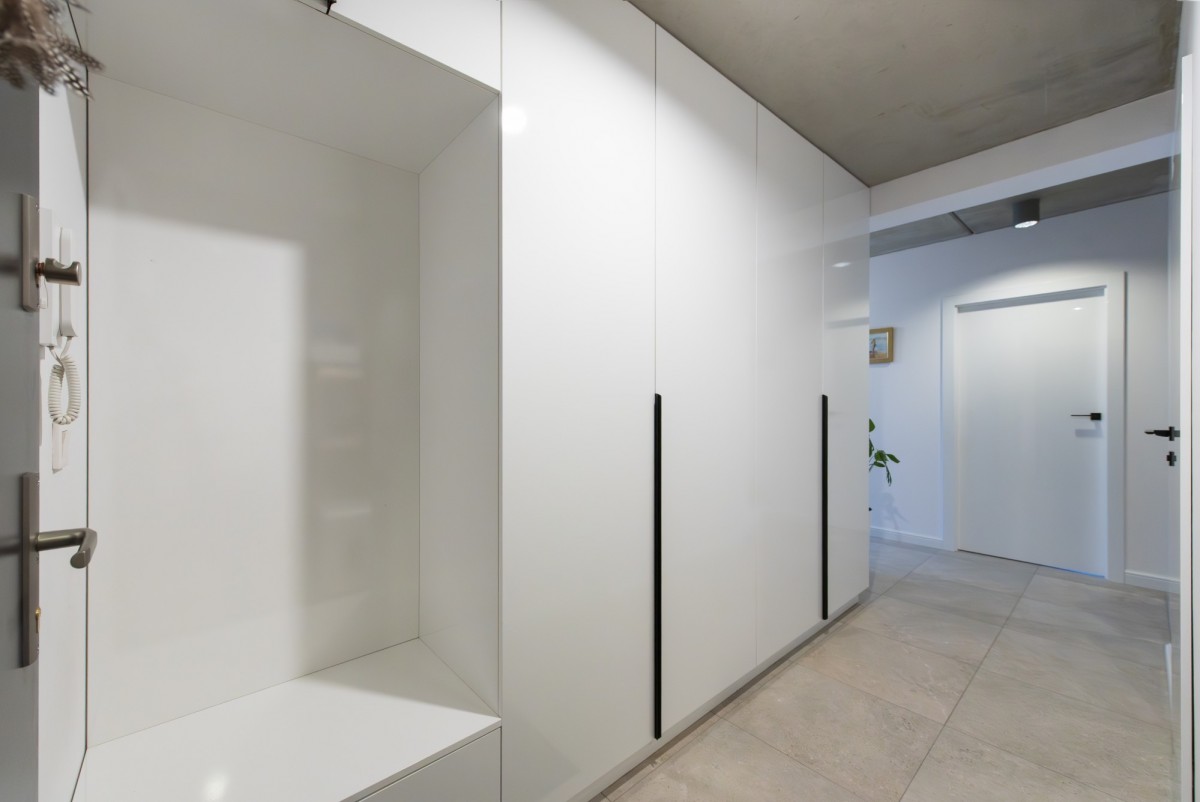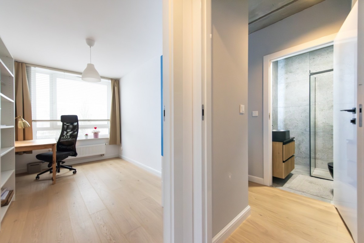 Mieszkanie ma bardzo wygodny, logiczny układ, z wyraźnym podziałem na strefę dzienną i prywatną, co przekłada się na komfort codziennego użytkowania.