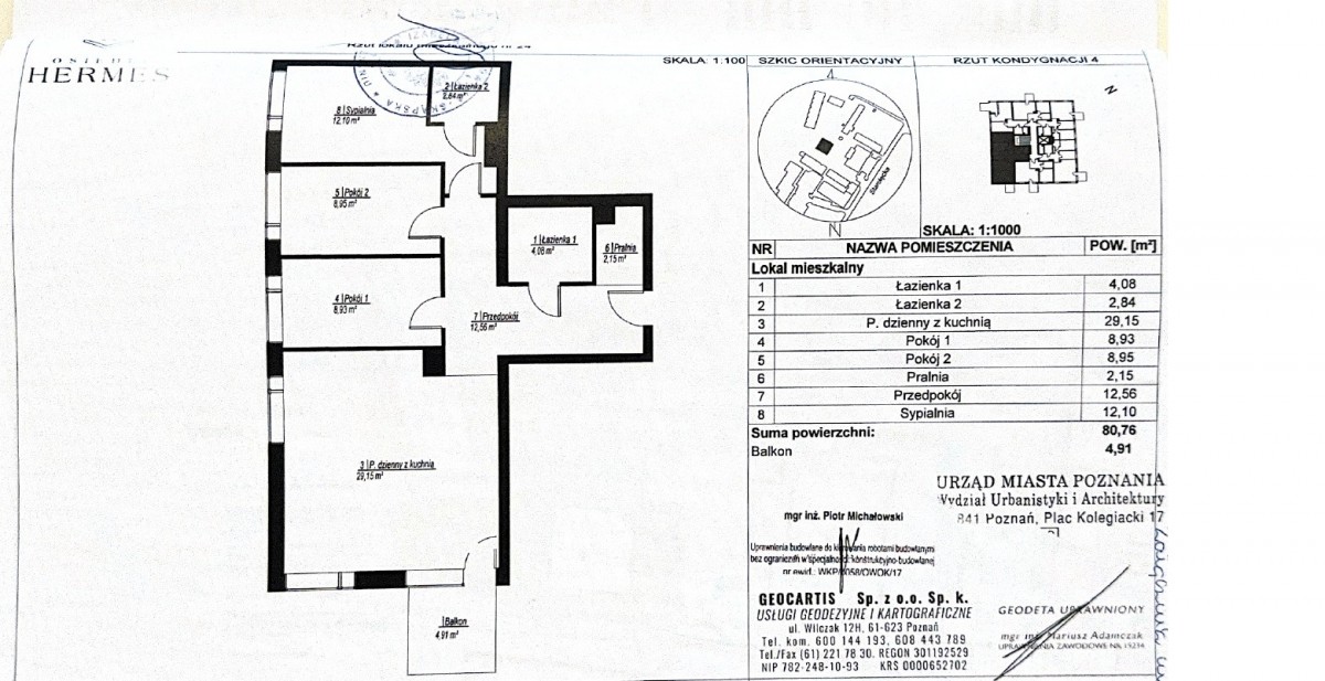 Na sprzedaż jasne i bardzo funkcjonalne mieszkanie 4-pokojowe o powierzchni 80,76 m², położone na 5. piętrze nowoczesnego apartamentowca z 2023 roku, na spokojnym i zielonym osiedlu Hermes.