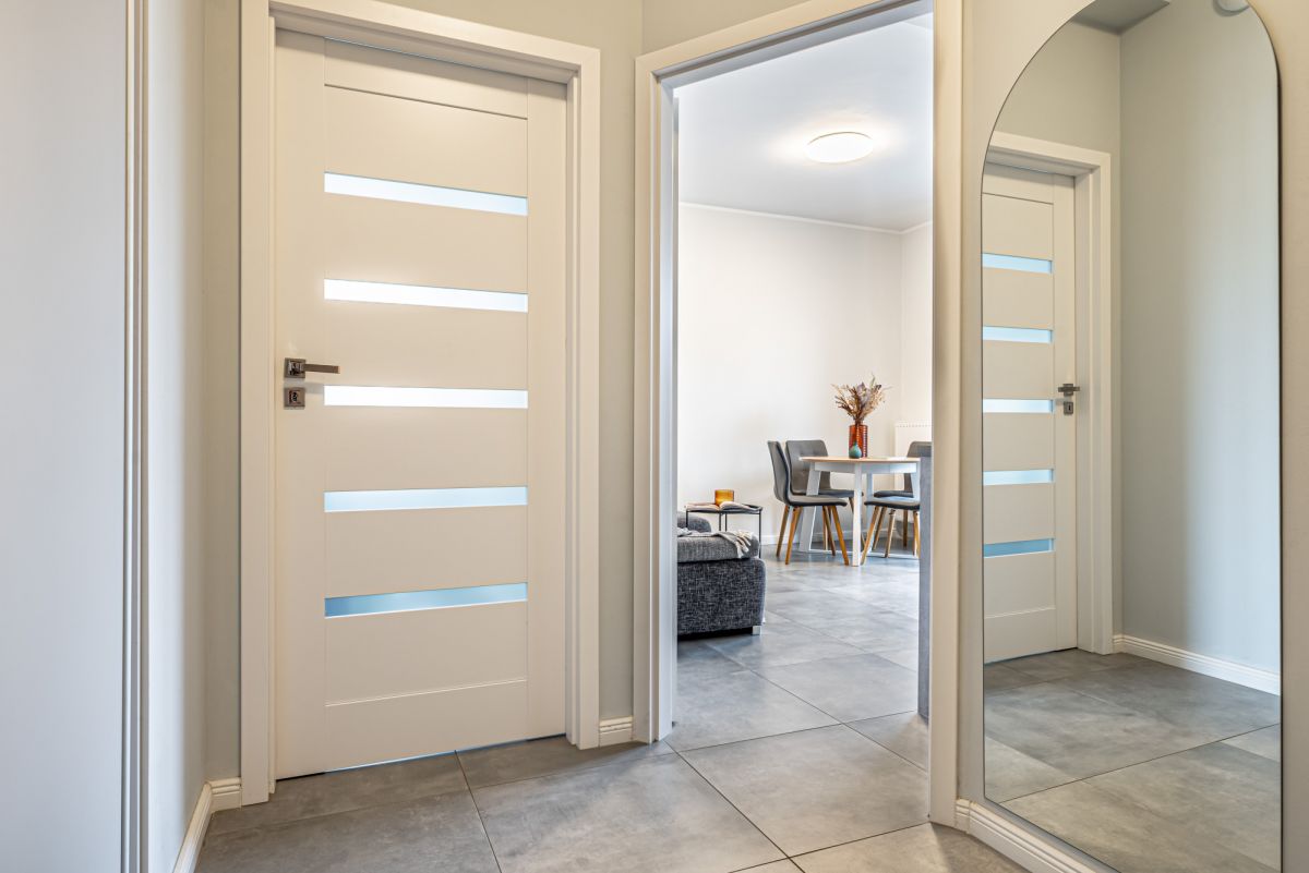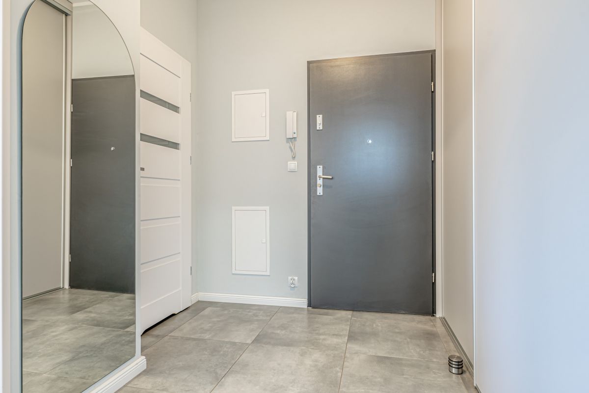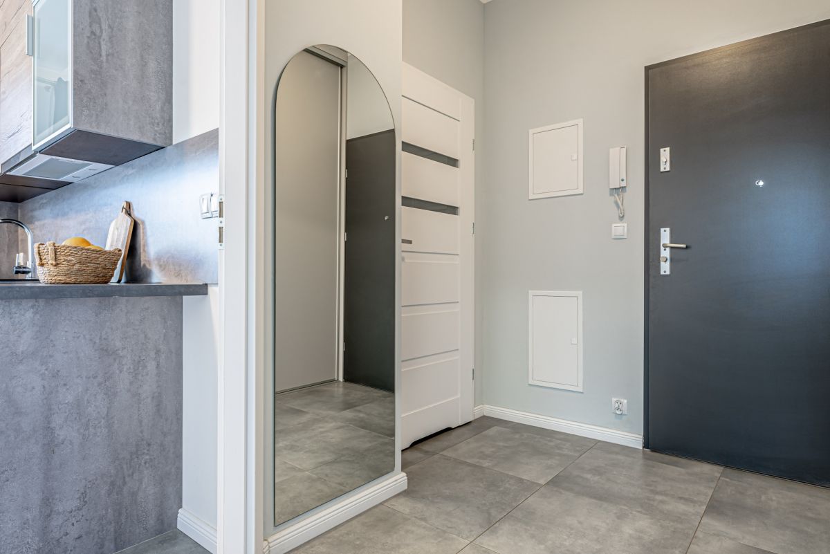 Cechuje ją ergonomiczny układ. W korytarzu znajduje się pojemna, przesuwna szafa.