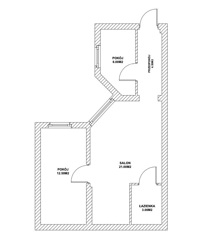 Mieszkanie o powierzchni 47 m2 składa się z: