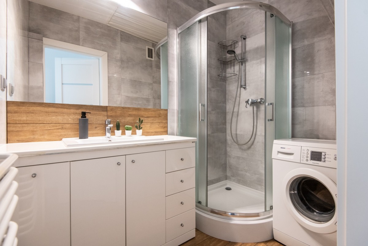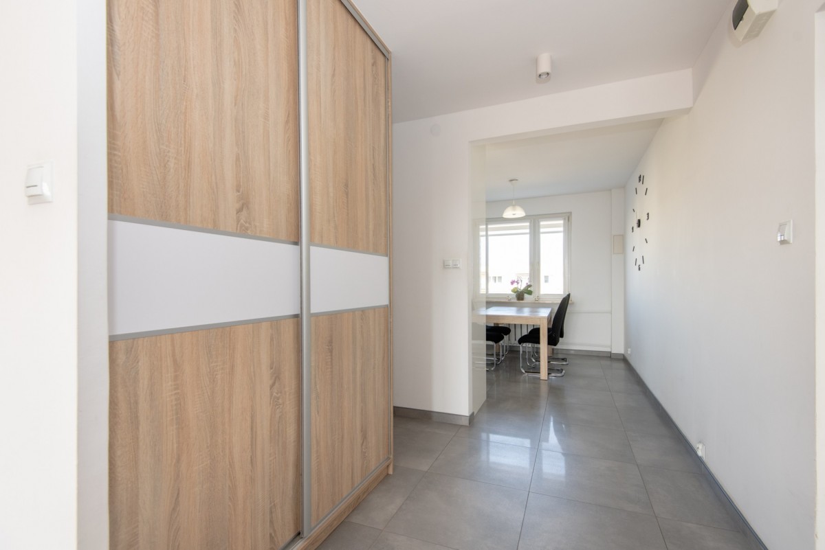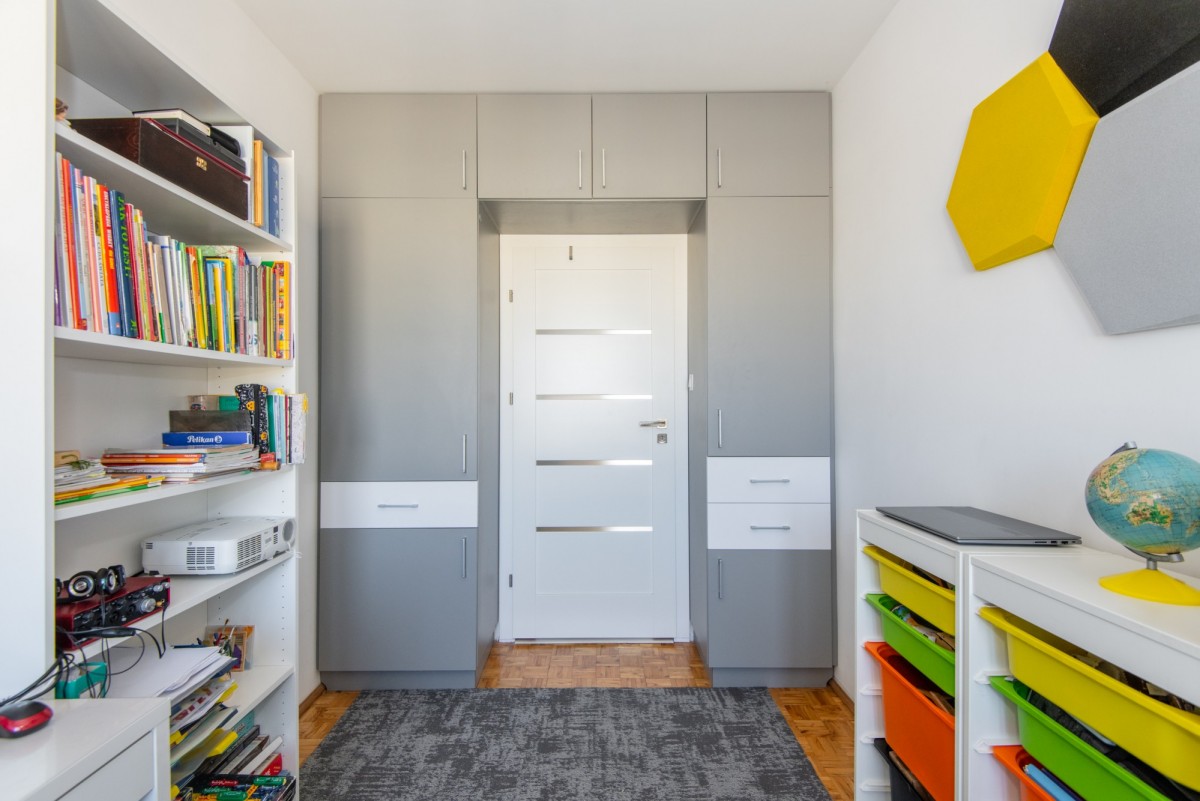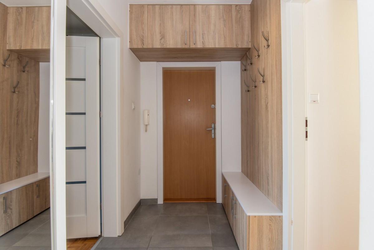 W mieszkaniu do dyspozycji pojemne szafy w zabudowie.
