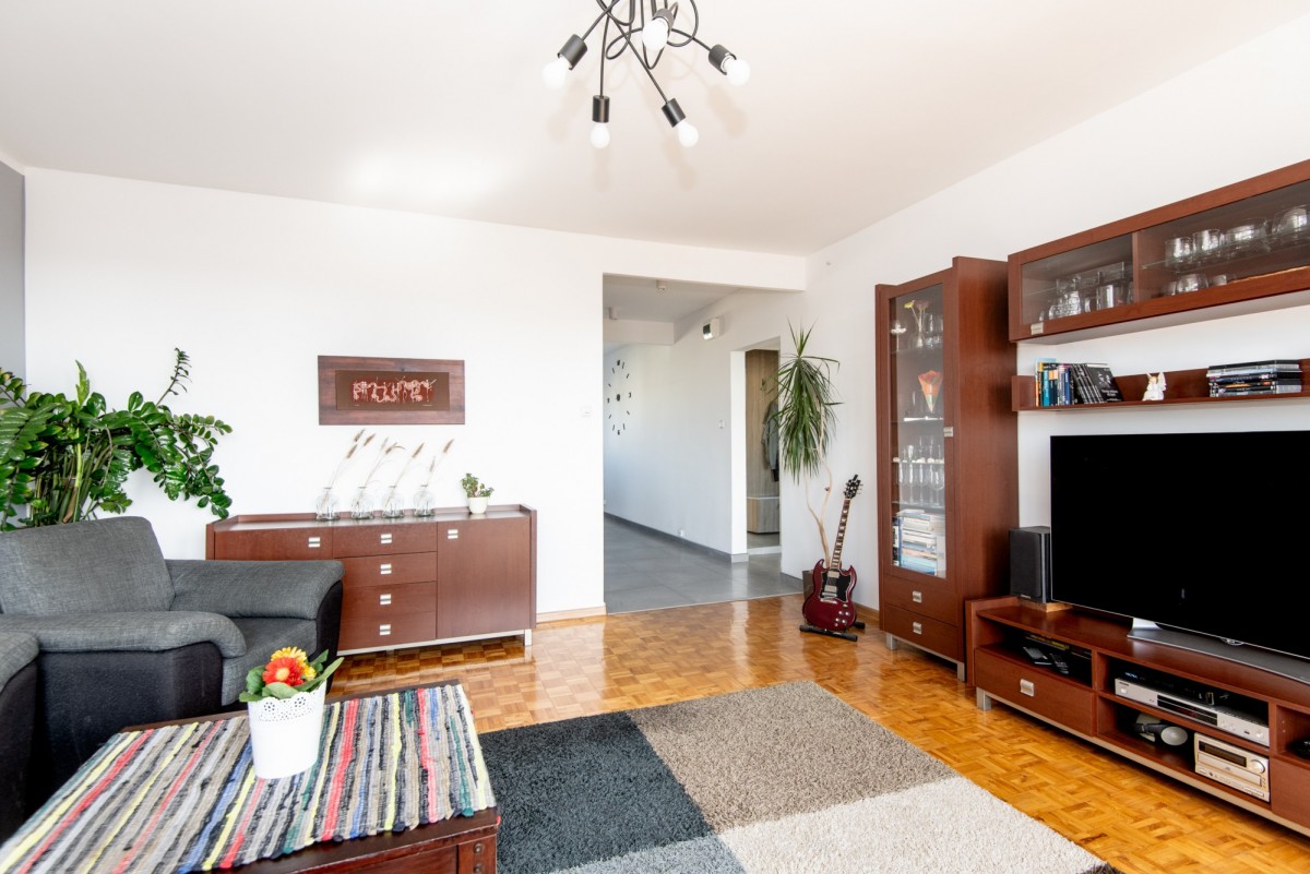Z salonu wyjście na przestronną loggię. Okna PCV. W salonie i sypialniach mozaika parkietowa.