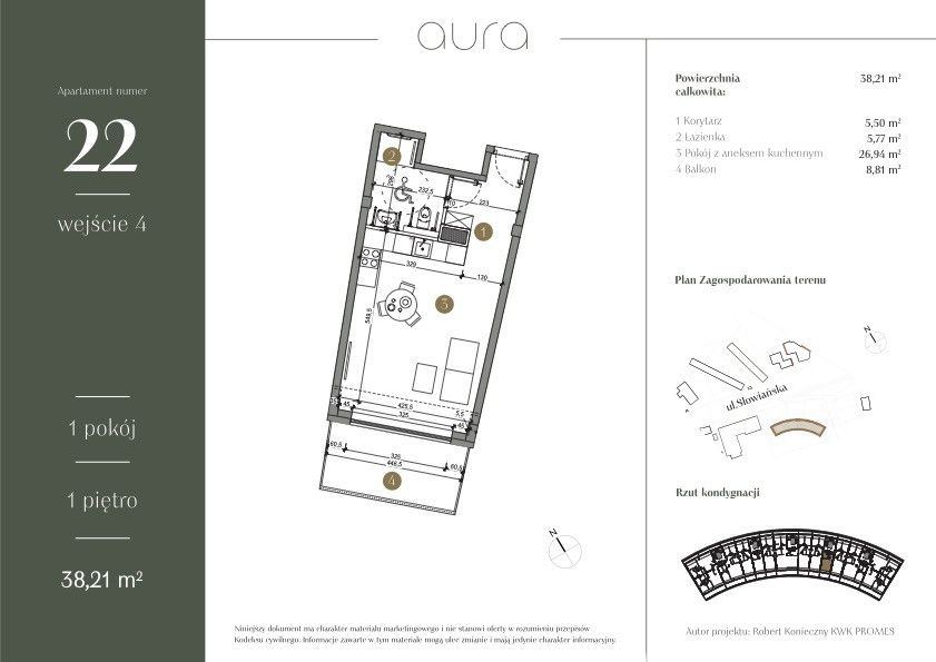 Przedstawiamy Apartament nr 22 w prestiżowej inwestycji Aura przy ul. Słowiańskiej w Poznaniu - projekcie autorstwa Roberta Koniecznego (KWK Promes). To unikalne połączenie najwyższej klasy architektury, sztuki i ekologii. 1‑pokojowy apartament