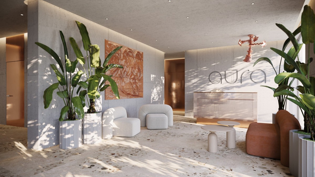 Aura to kameralny budynek o nowoczesnej, ekologicznej architekturze, zaledwie 55 apartamentów na 4 kondygnacjach i zaledwie 2-4 lokalami na piętrze. Każdy z 5 niezależnych wejść zapewnia mieszkańcom poczucie prywatności. Wnętrza części wspólnych zdobią dzieła sztuki współczesnych polskich artystów. Aura to projekt, w którym architekci postawili na organiczne kształty i wkomponowanie w teren. Bryła budynku “wyrasta” z ukształtowania terenu, tworząc subtelne pagórki i łagodne przejścia