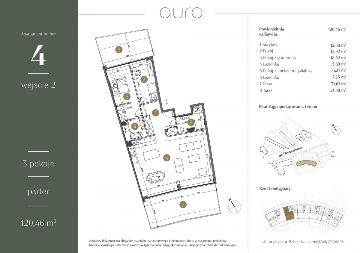 Prezentujemy wyjątkowy Apartament nr 4 o powierzchni 120,46 m², położony na parterze kameralnej inwestycji Aura Apartamenty - jedynego takiego projektu w Polsce, autorstwa renomowanego architekta Roberta Koniecznego. To propozycja dla osób, które cenią przestrzeń, prestiż i unikalny styl życia. Apartament oferuje swobodę aranżacji, przestronne wnętrza i spektakularne widoki na zieleń Parku Cytadela oraz najbliższej okolicy.