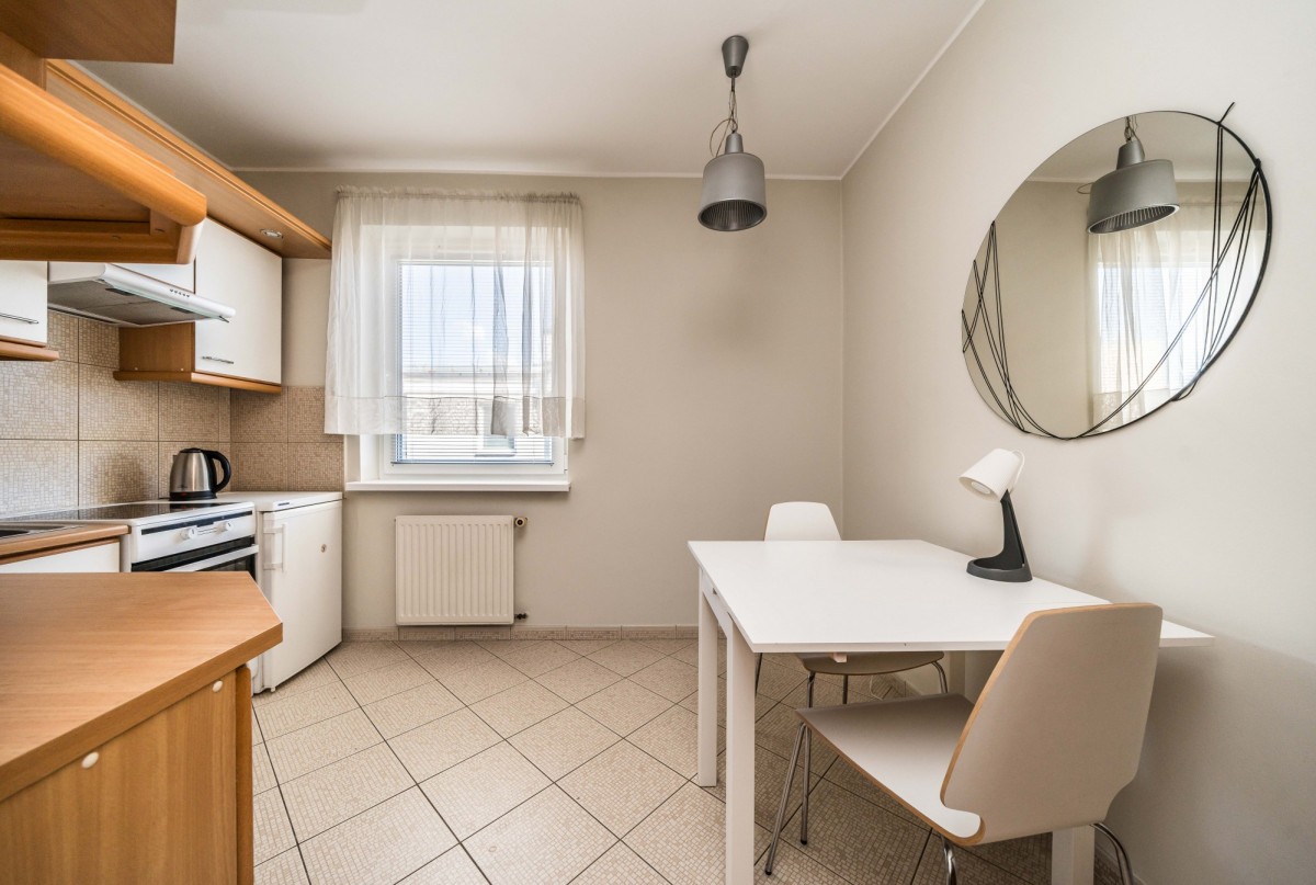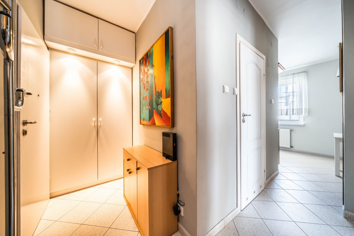 Niewątpliwą zaletą mieszkania jest jego układ, który oprócz głównego pokoju, oferuje osobną kuchnię z jadalnią, lub miejscem do nauki, a także obszerny korytarz z szafami w zabudowie, oraz dużą łazienką z wanną.
