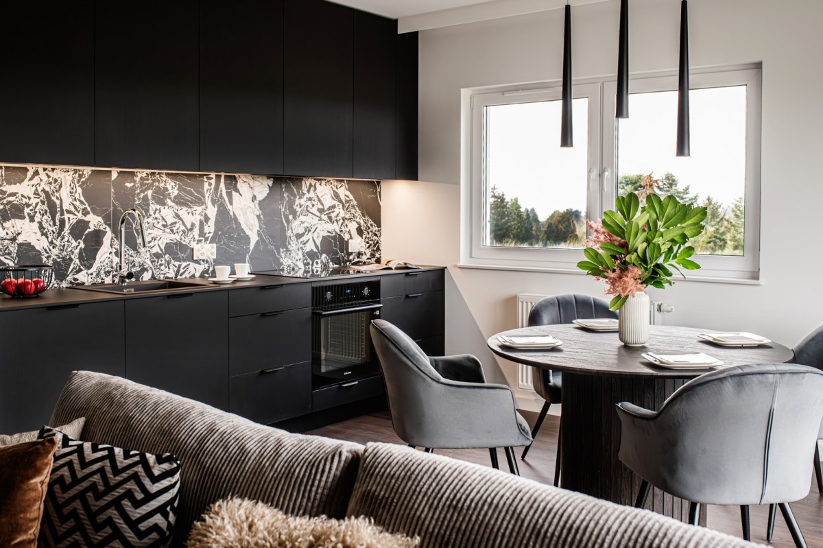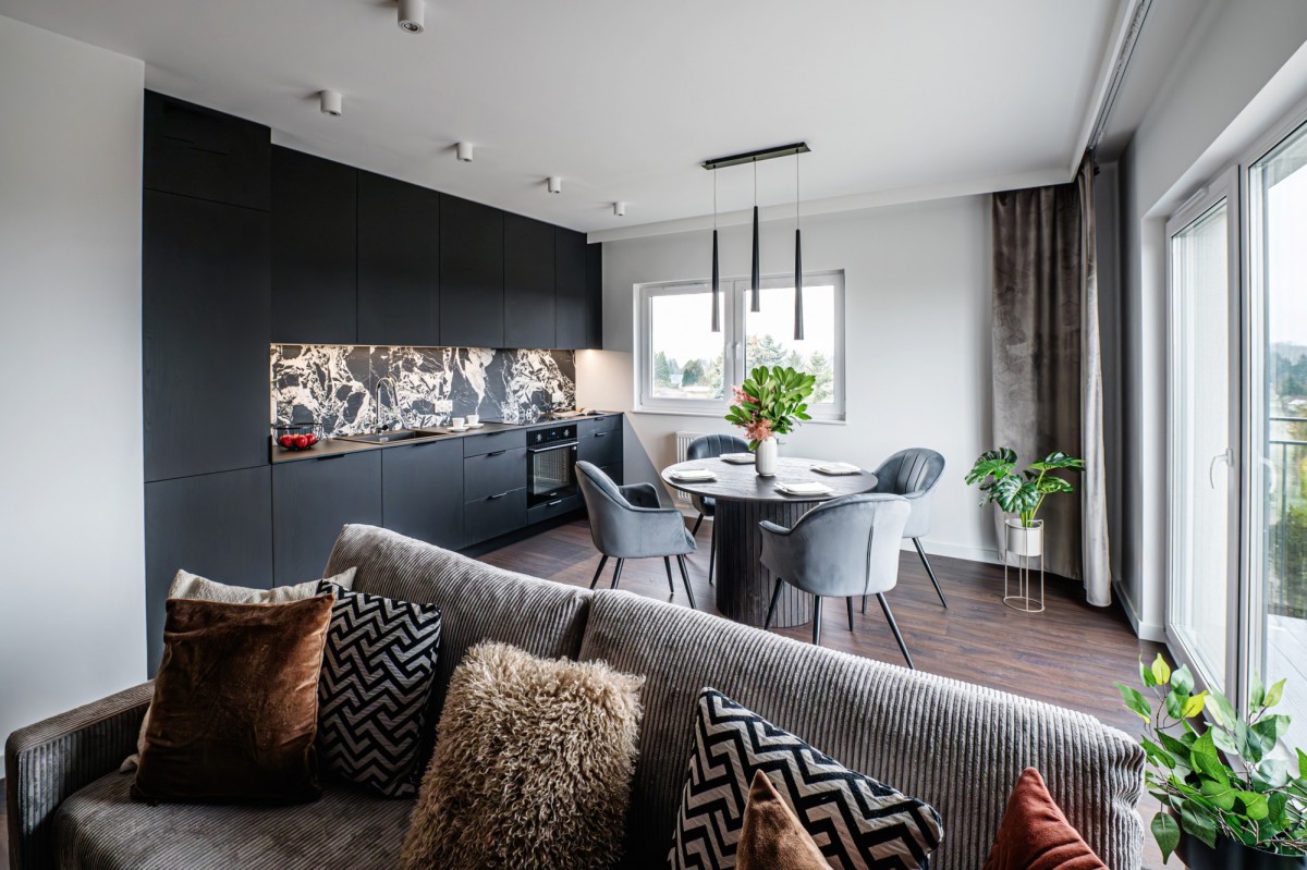- salon z aneksem kuchennym - bardzo dobrze doświetlony, idealna strefa na relaks i spędzanie czasu z bliskimi.
