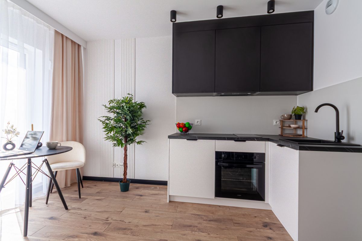- salon z nowoczesnym aneksem kuchennym,