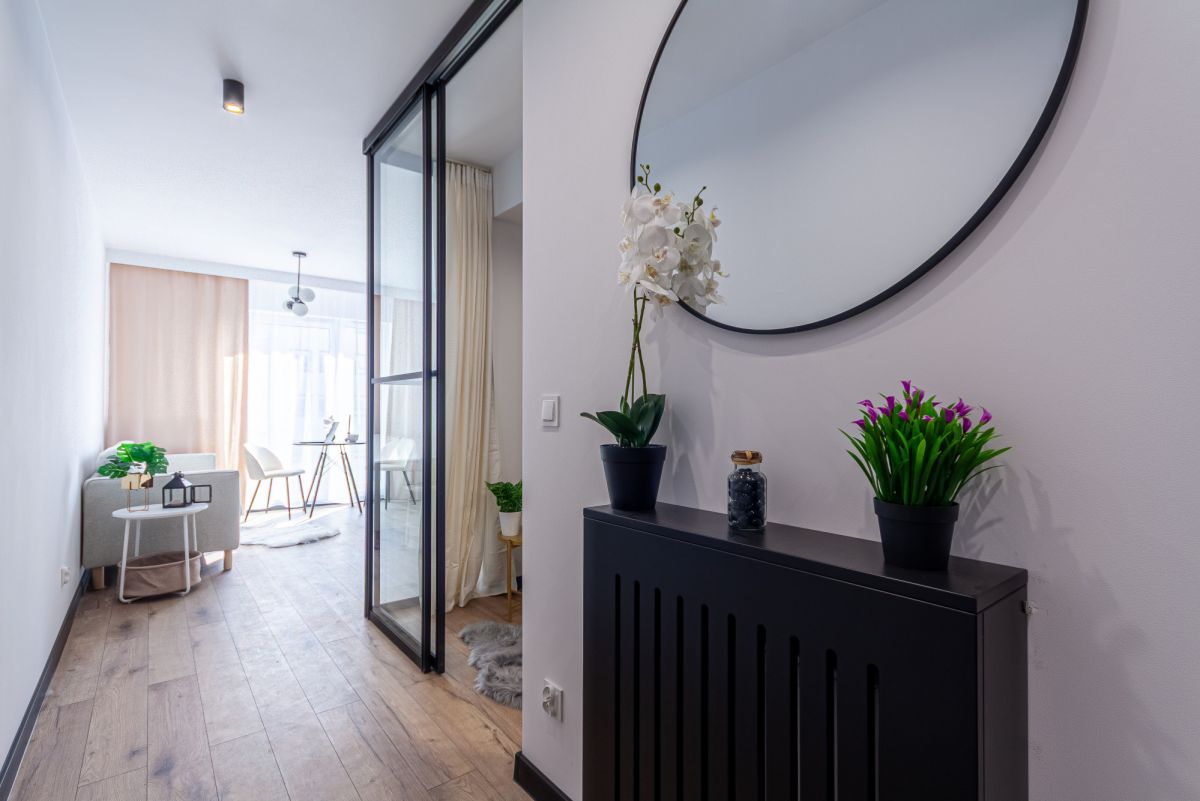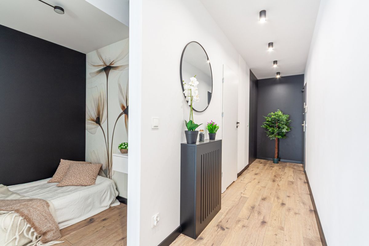 - funkcjonalny korytarz z dużą zabudowaną szafą,
