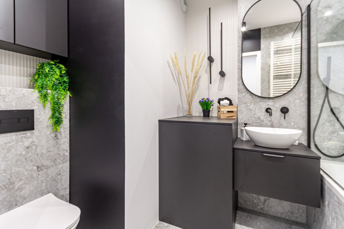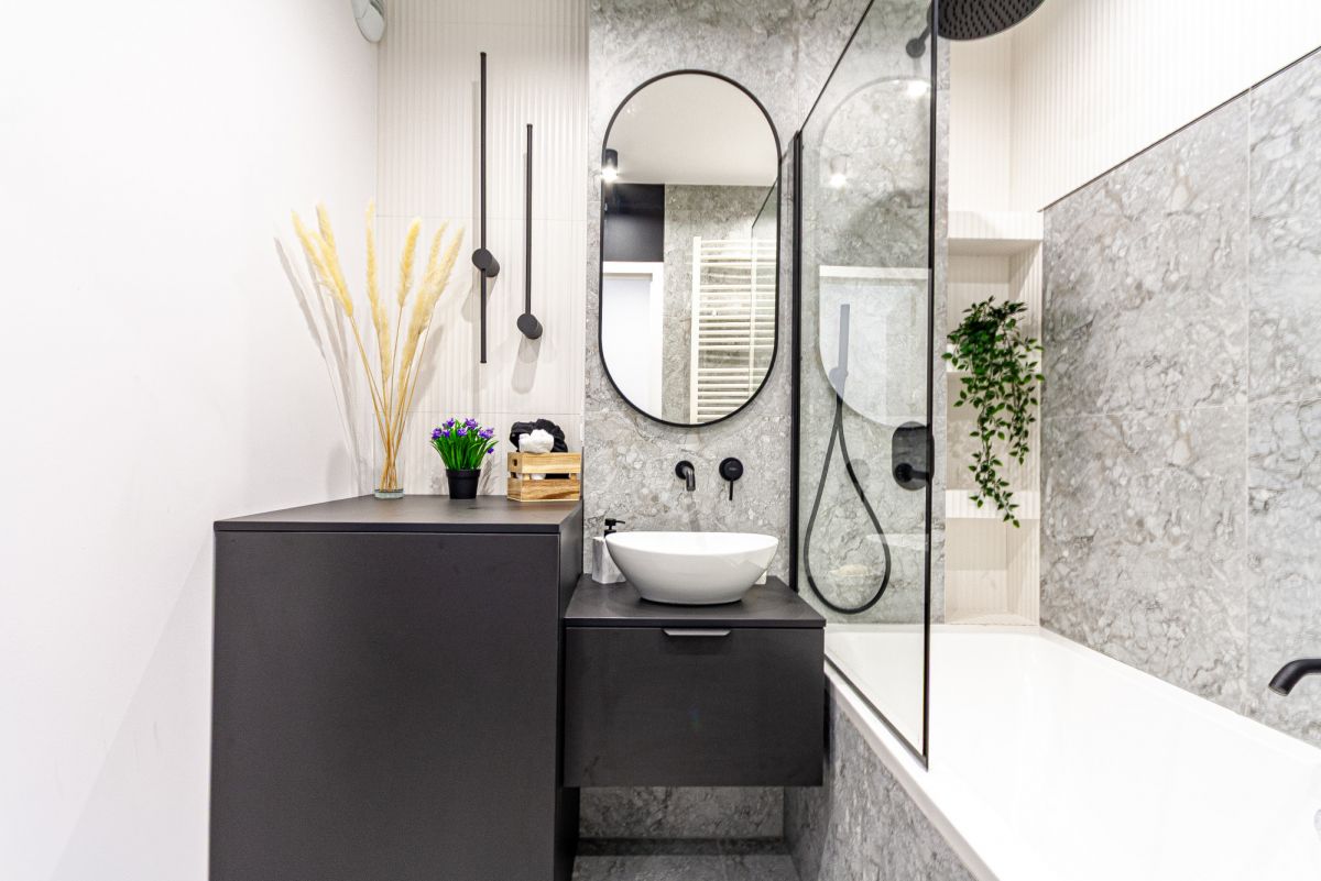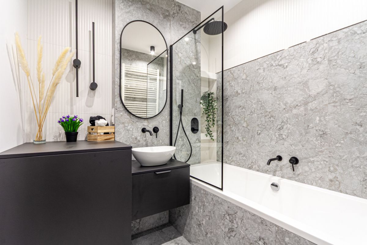 - elegancka łazienka z wanną i prysznicem