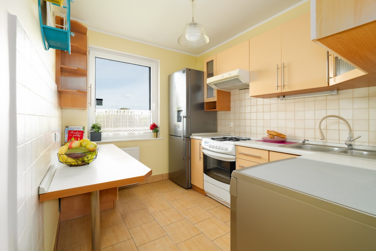 - wyposażonej kuchni, łązienki i wc, w którym znajduje się także pralka.