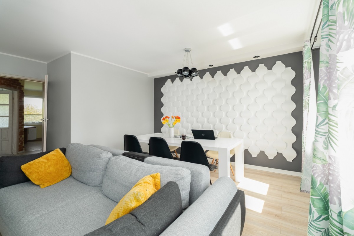 - przestronny pokoj dzienny o powierzchni ok 25m2, z wydzielonym miejscem jako jadalnia oraz część wypoczynkową, z salonu wyjście na balkon.