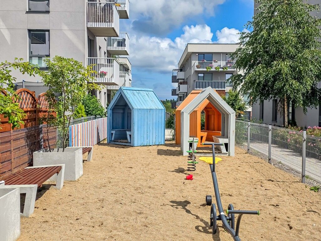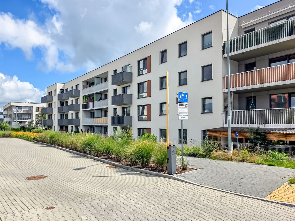 Mieszkanie znajduje się w nowoczesnym, estetycznym bloku mieszkalnym z 2019 roku, będący częścią inwestycji Debiut II. Osiedle zostało starannie zaprojektowane – z dbałością o części wspólne, z placami zabaw, zielenią i miejscami do odpoczynku. Klatki schodowe czyste, zadbane, wyposażone w cichobieżne windy.