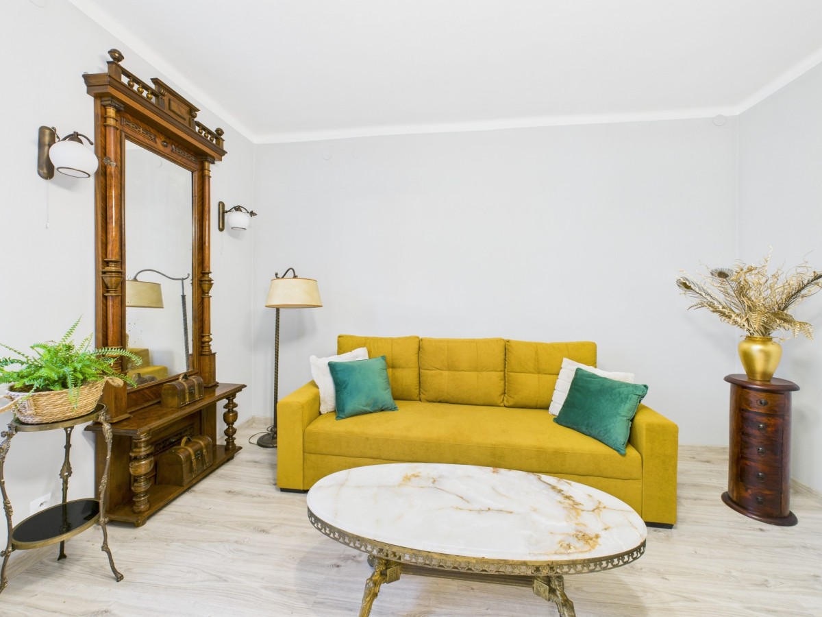 To nie jest standardowe mieszkanie z „katalogu”. To wnętrze ma klimat, którego nie kupisz w sieciówkach. Połączenie nowoczesności z unikatowym eleganckim i ponadczasowym stylem.