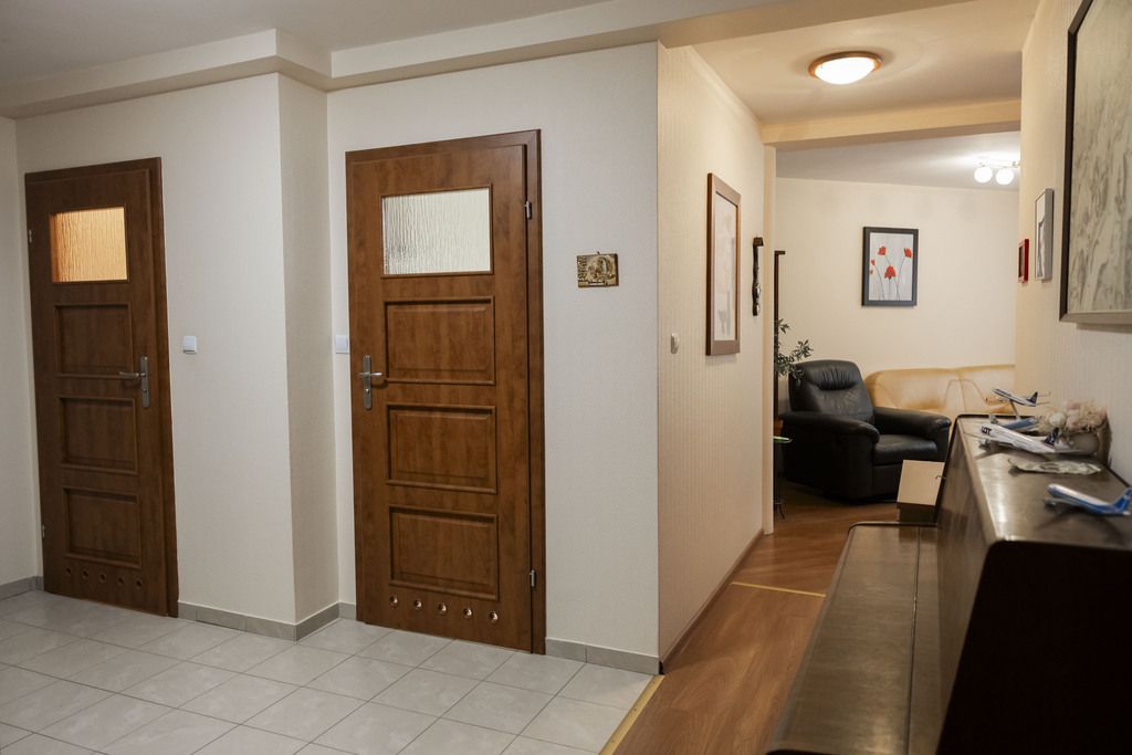 Na wysokim parterze czeka 74 m² bardzo wygodnej przestrzeni (a po podłodze aż ok. 96 m²), w której wszystko ma sens: dwie komfortowe sypialnie, duży salon z otwartą kuchnią, łazienka, osobna toaleta i szeroki korytarz, który nie zmusza do przeciskania się z torbami z zakupów.