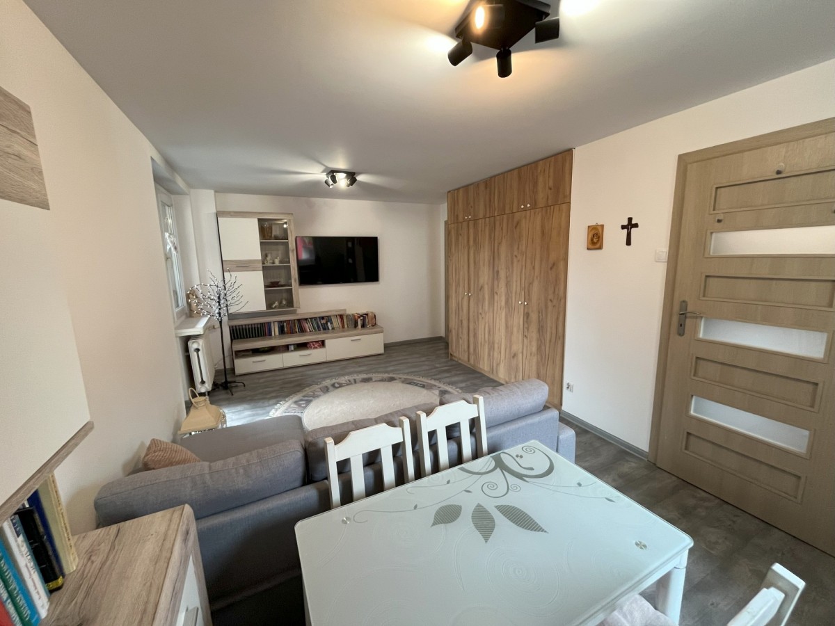 - Salon z jadalnią oraz dużą szafą- mieszkanie idealne dla singla lub pary;