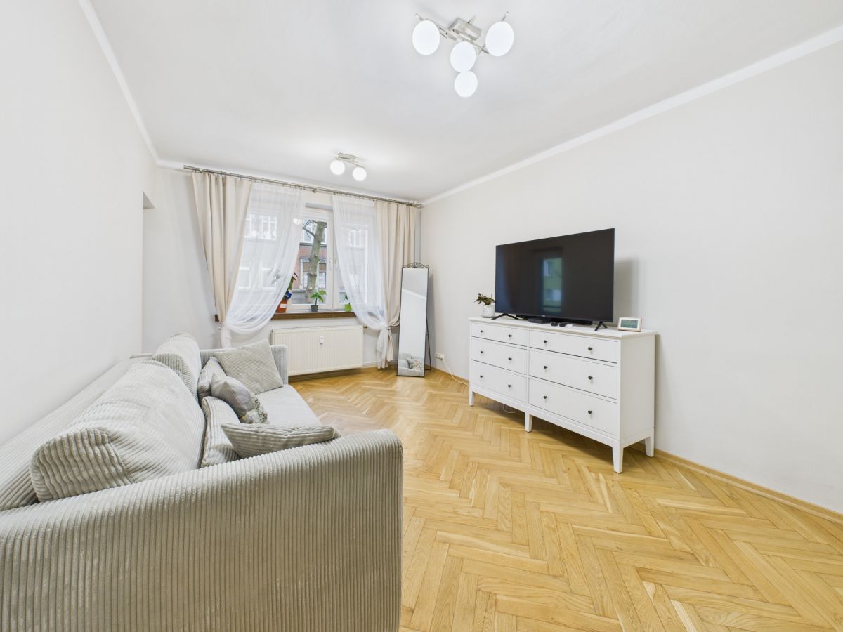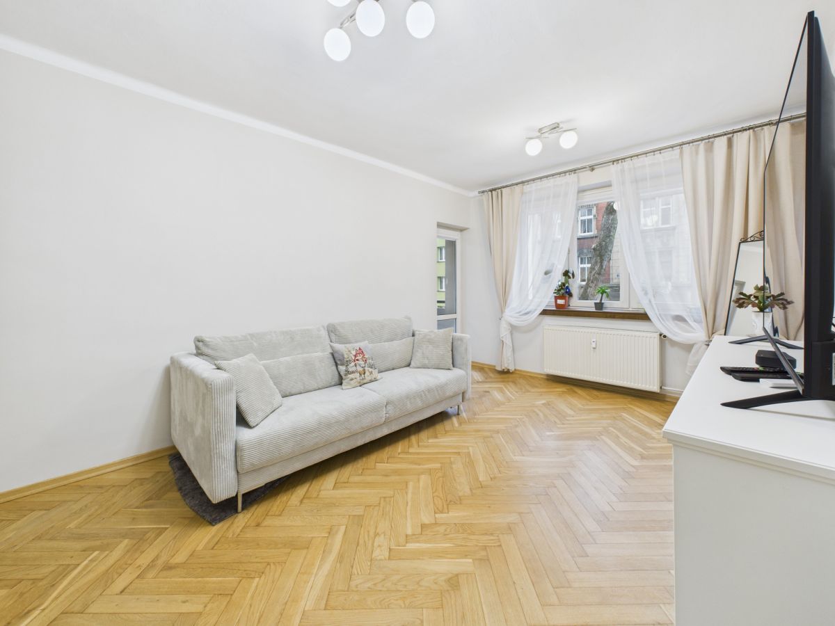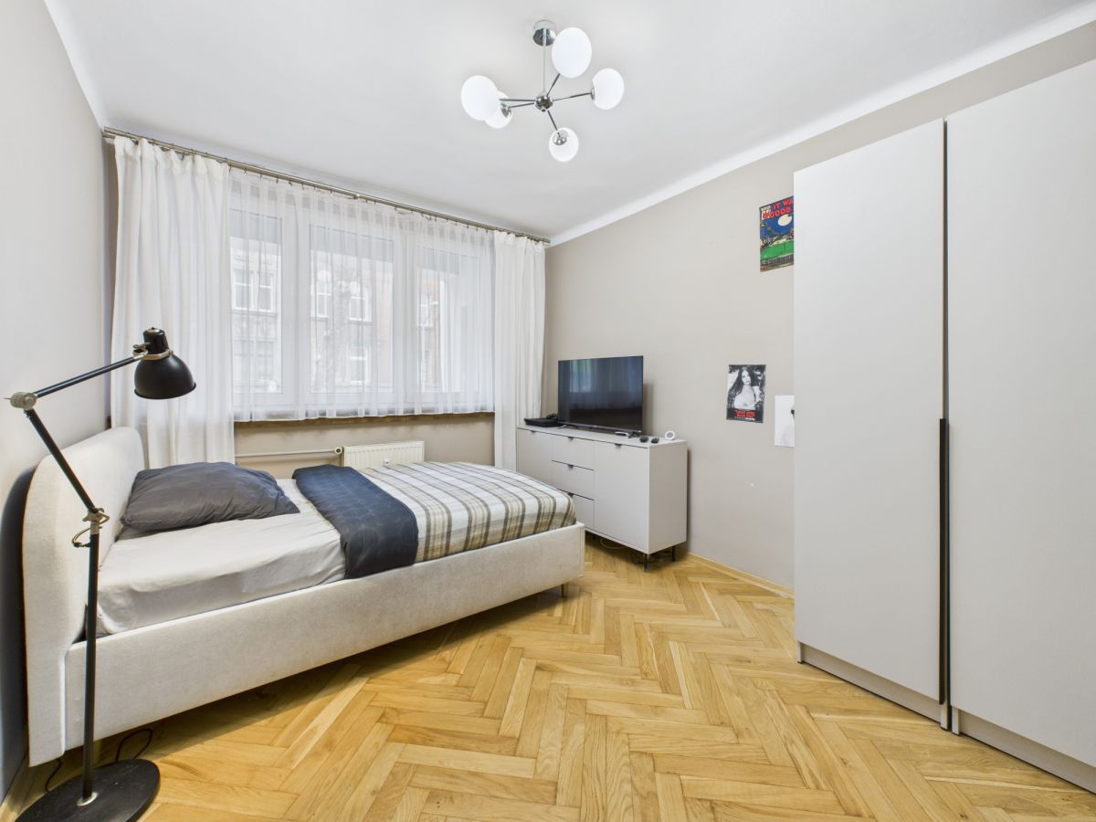 - 2 przestronne pokoje z drewnianą podłogą - idealne dla rodziny, pary lub singla, zapewniające wygodę i możliwość dowolnej aranżacji.