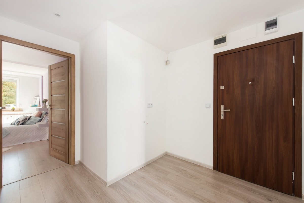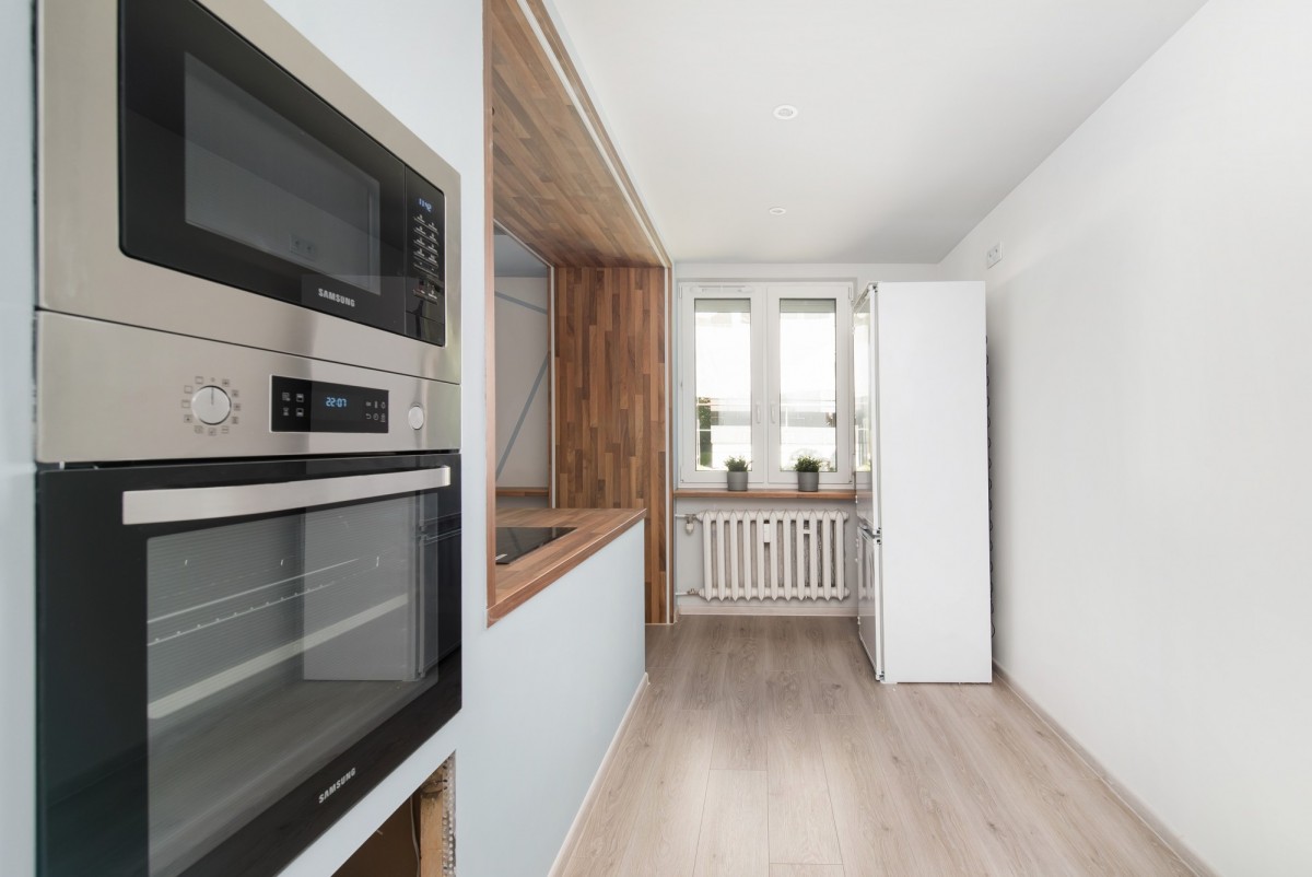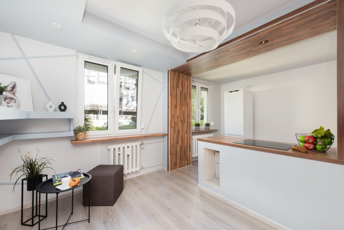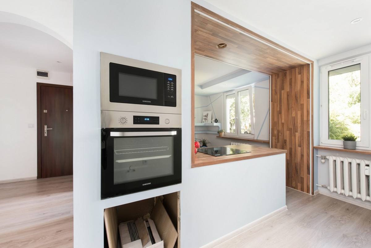 Remont obejmował: wymianę instalacji, gładzie, stolarkę drzwiową, nowoczesną łazienkę oraz kuchnię.