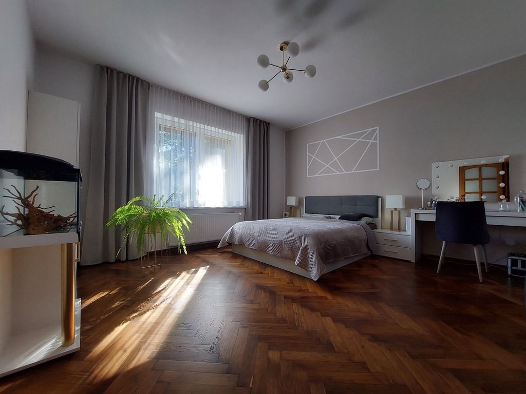 Wyposażenie oferowane w cenie: zabudowa kuchenna oraz sprzęt AGD (w pełni wyposażona: lodówka, duża zmywarka, piekarnik, płyta indukcyjna, meble na wymiar), szafa w zabudowie, pozostałe umeblowanie do uzgodnienia.