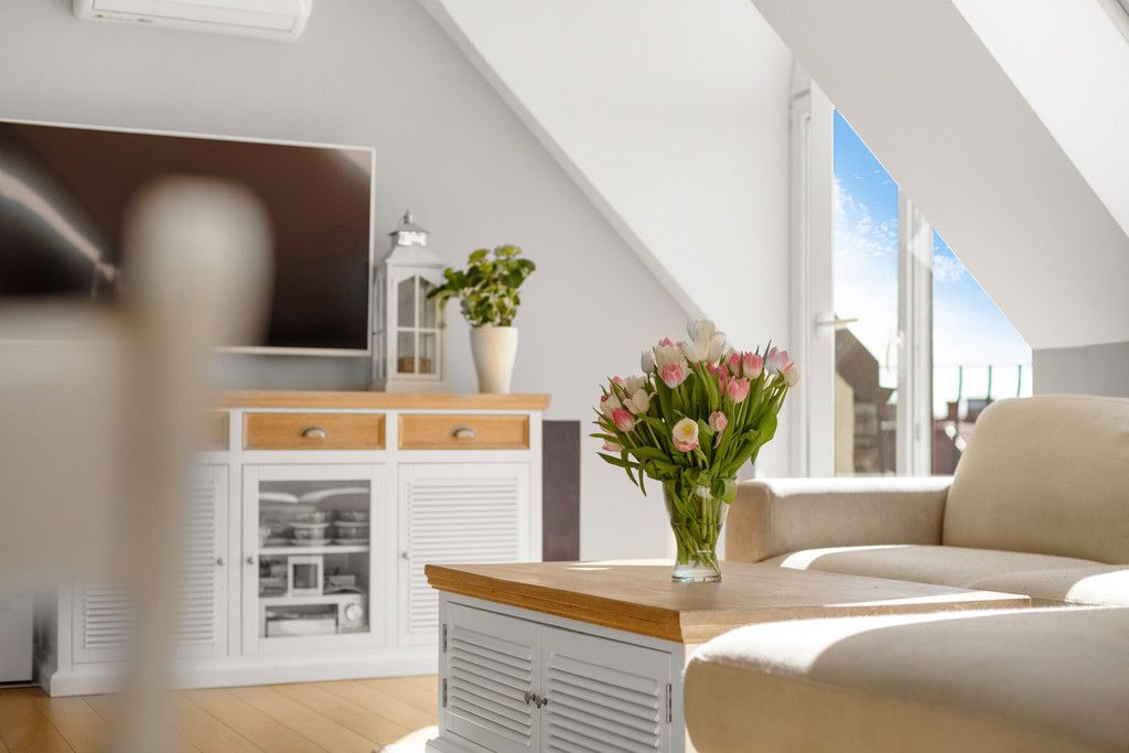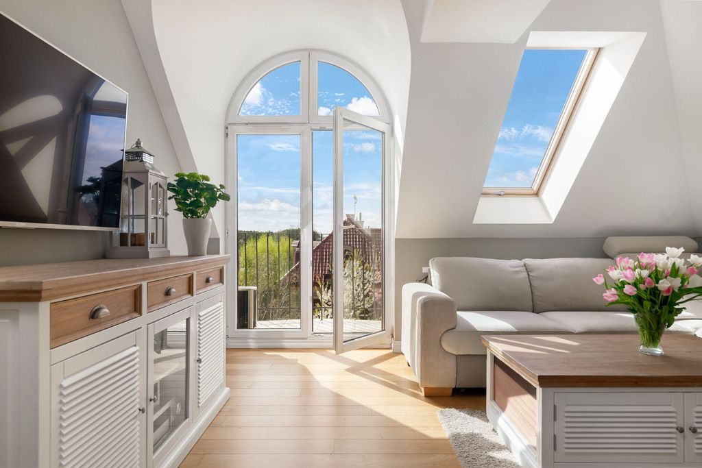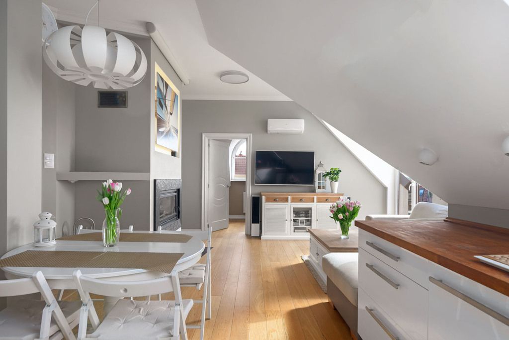 - Przestronny salon z kominkiem, klimatyzacją i wyjściem na balkon