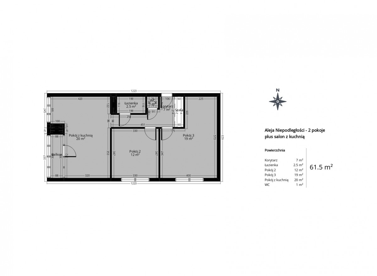 * W ogłoszeniu użyto poglądowych wizualizacji mających na celu zaprezentowanie potencjału aranżacyjnego mieszkania po remoncie - wg rzutu pokazującego układ salon z aneksem oraz 2 sypialnie.