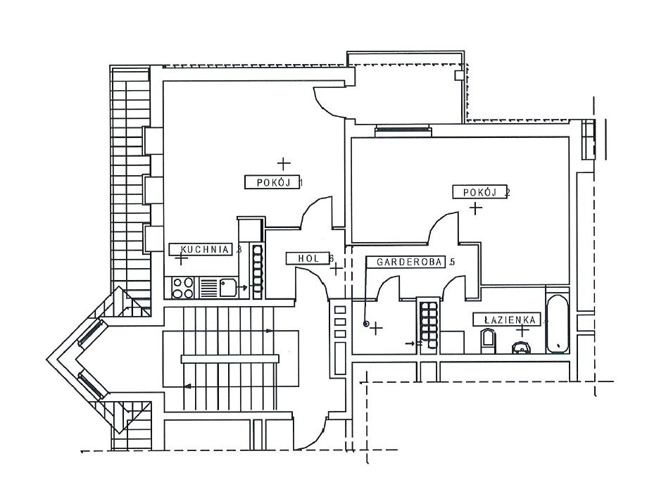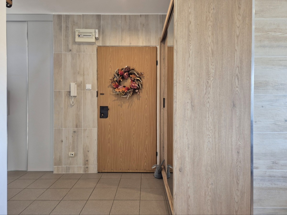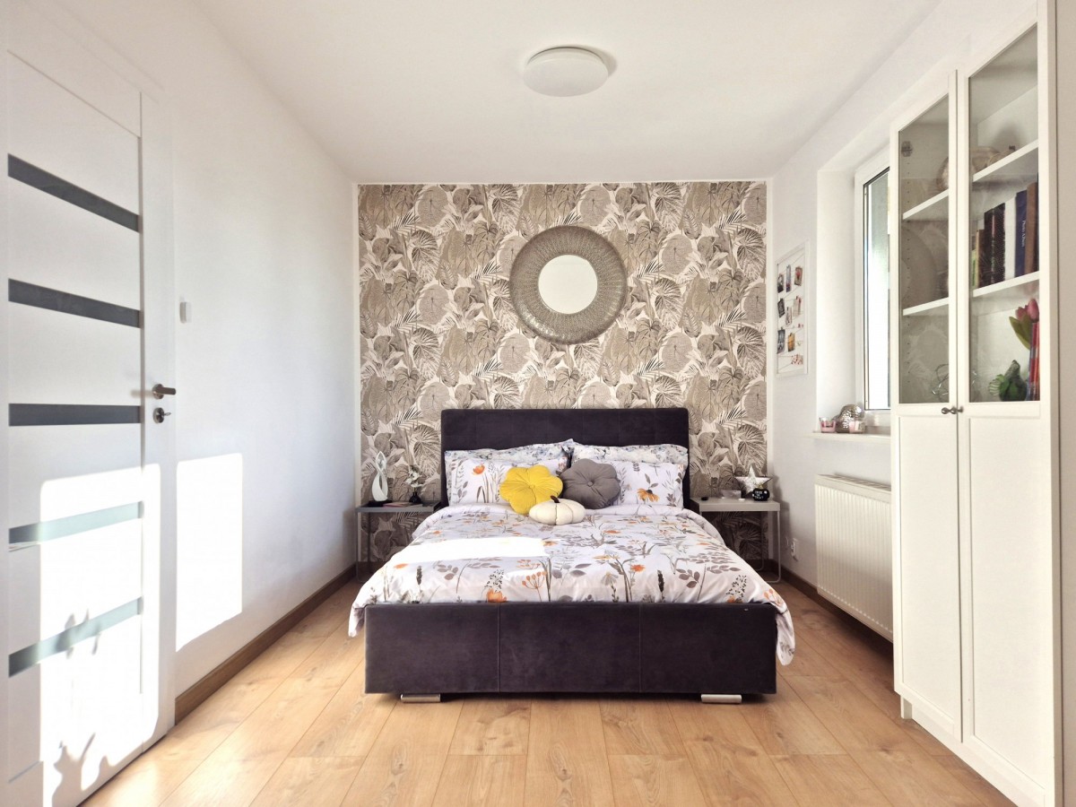 * przedpokój z pojemną szafą przy wejściu oraz małą garderobą za drzwiami przesuwnymi, gdzie można też schować przedmioty codziennego użytku, np. odkurzacz czy deskę do prasowania