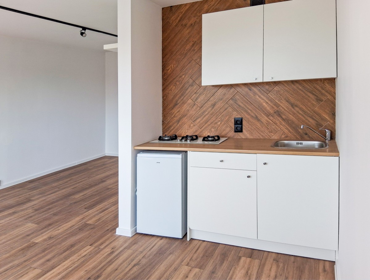 - powierzchnia użytkowa 26,5 mkw, na którą składa się przestronny salon z aneksem kuchennym oraz łazienka z WC