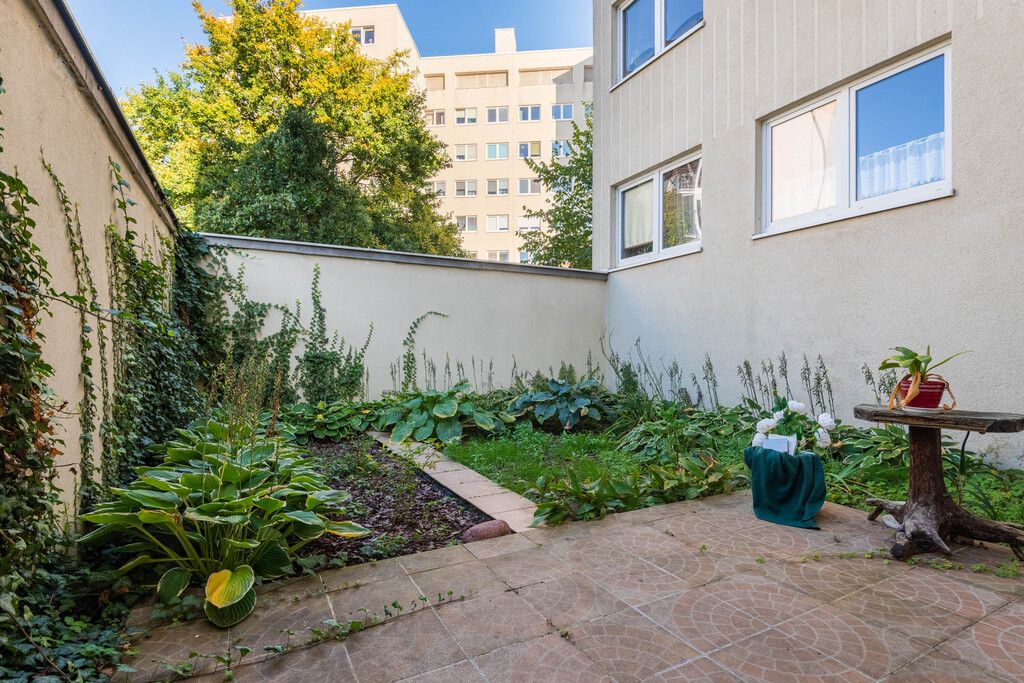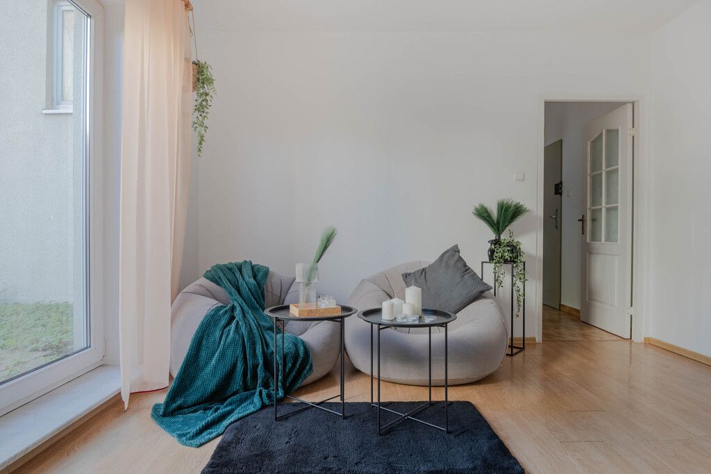 Największym atutem mieszkania jest jasny pokój z dużymi oknami i bezpośrednim wyjściem do ogródka. Zielona przestrzeń z tarasem to idealne miejsce na poranną kawę, relaks po pracy czy letnie spotkania z przyjaciółmi. Ustawny, kwadratowy kształt pokoju pozwala na wiele możliwości aranżacyjnych. Wnętrze zostało niedawno odświeżone i jest gotowe do urządzenia według własnych potrzeb.