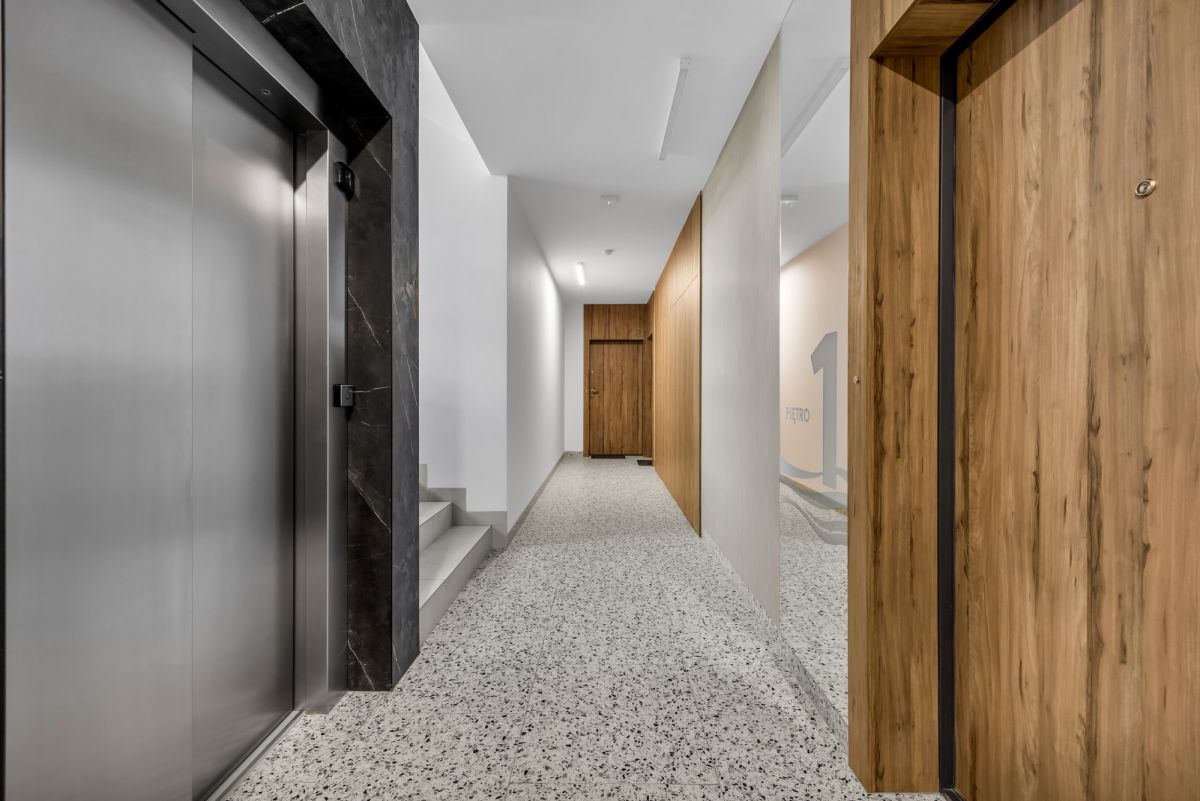 The apartment building was completed in 2023 by developer Spravia and is part of the prestigious Wiślany Mokotów VI estate. The estate offers numerous amenities for residents: green patio, playground, recreational areas, shops, and service points.