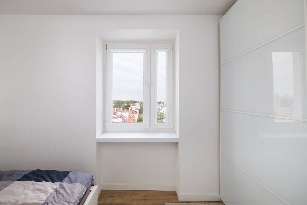 - balkonu z wyjątkowym widokiem na centrum Warszawy i Pałac Kultury.