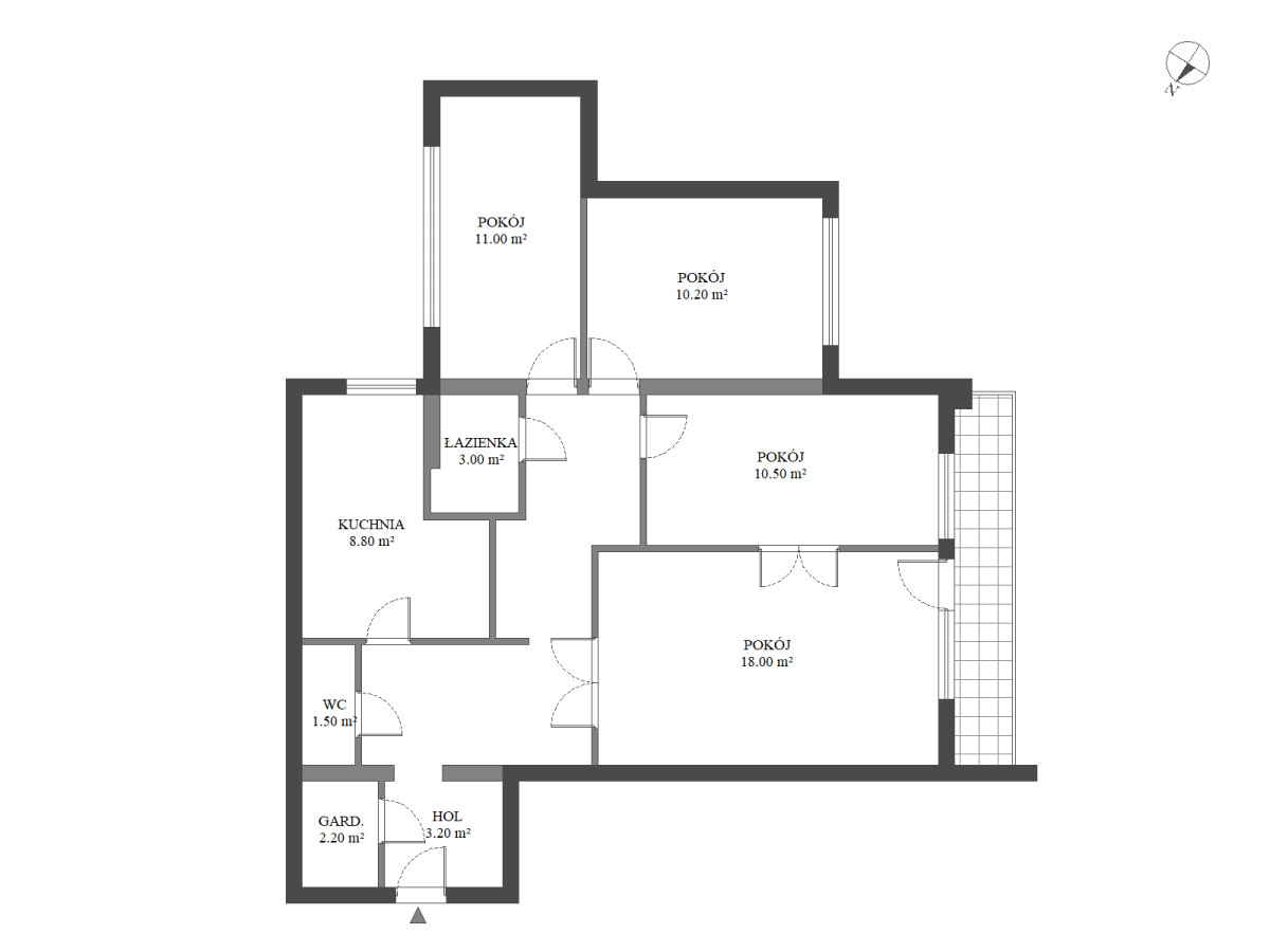 + przestronny korytarz (13,8 m²), który można dodatkowo zabudować albo stworzyć przestrzeń kuchenną i jadalną, tak by stworzyć mieszkanie o pięciu pokojach.