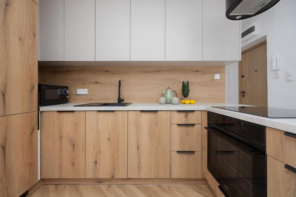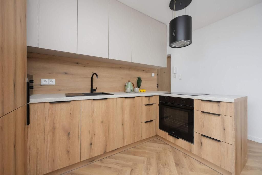 Zabudowy meblowe wykonano na wymiar przez stolarza, co pozwoliło maksymalnie wykorzystać przestrzeń. Mieszkanie jest w pełni wykończone, wyposażone w nowe sprzęty AGD na gwarancji.