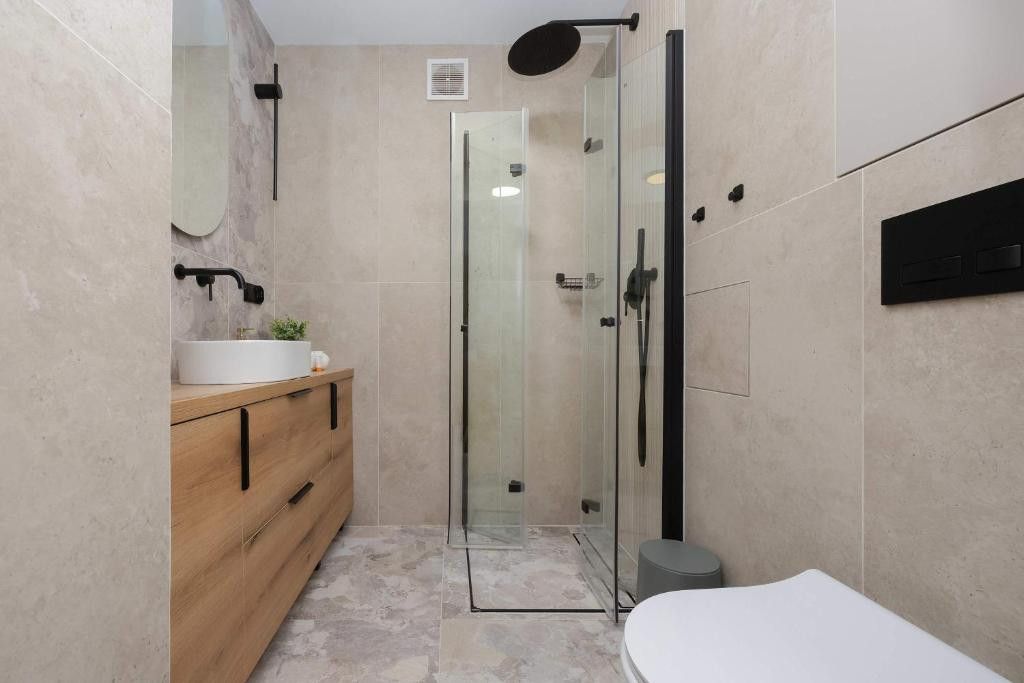 Mieszkanie znajduje się na Pradze Północ przy ul. Targowej 26/30. Kameralne osiedle i cisza za oknem dają świetne warunki do zamieszkania, a jednocześnie bliskość Dworca Wileńskiego, Dworca Wschodniego, stacji metra oraz Stadionu Narodowego gwarantuje bardzo dobrą komunikację i pełen dostęp do infrastruktury miejskiej. To lokalizacja, która pozwala zarówno na wygodne życie na co dzień, jak i na stabilny wynajem przez cały rok.