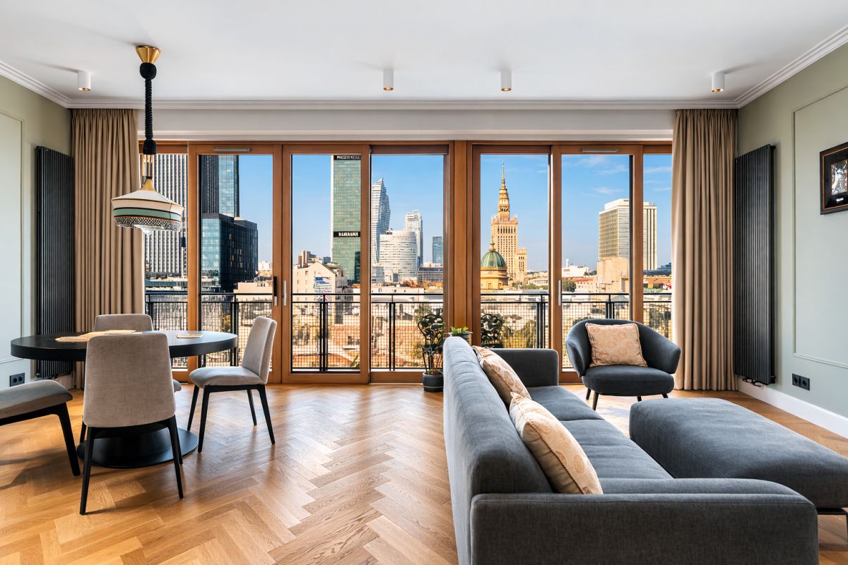 Wyobraź sobie poranną kawę z widokiem na budzącą się Warszawę, zachody słońca nad Pałacem Kultury i wieczorną panoramę miasta pełną świateł i to wszystko z własnego salonu. A jednocześnie po zamknięciu drzwi pozostajesz w spokojnej, cichej przestrzeni, która daje wytchnienie od energii centrum.