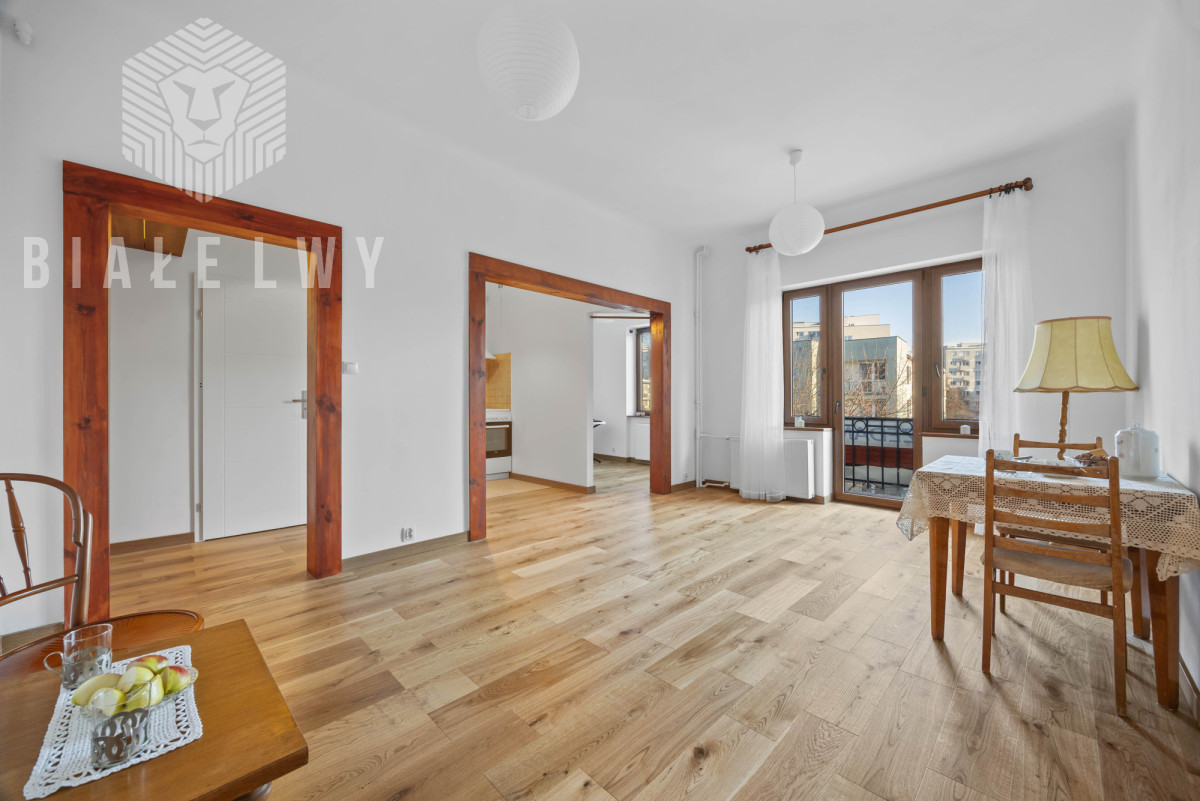 Mieszkanie po remoncie w pełnym zakresie, z funkcjonalnym układem pomieszczeń. Okna i balkon wychodzą na ciche podwórko od strony południowej, co zapewnia dobre doświetlenie i większy komfort akustyczny. Wysokość pomieszczeń około 2,97 m podkreśla kamieniczny charakter wnętrza.