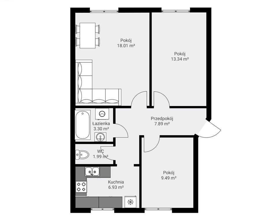 - Oddzielna, widna kuchnia z pełnym wyposażeniem (kuchenka gazowa, piekarnik, lodówka, zmywarka) – 6,9 m²