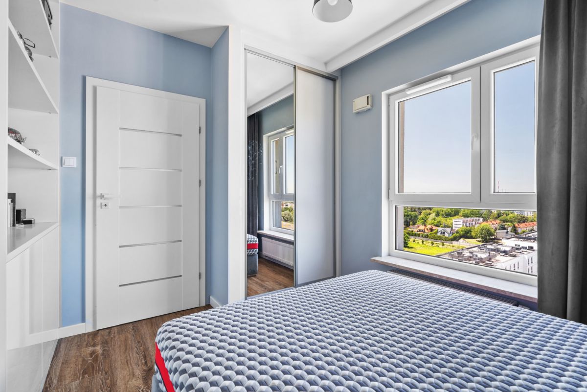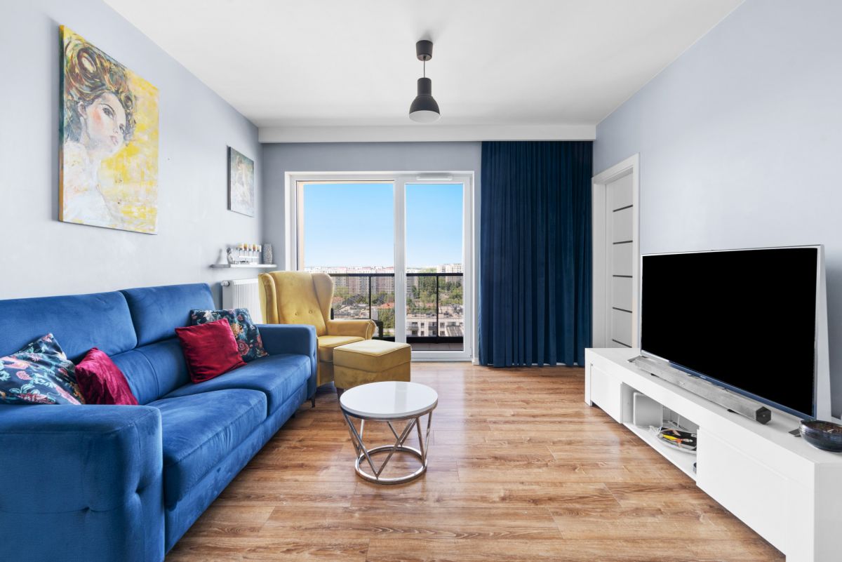 Mieszkanie w inwestycji Moderna przy ul. Głębockiej 5 na warszawskim Targówku. Lokal znajduje się na ostatnim, 11. piętrze z pięknym widokiem na panoramę Warszawy.