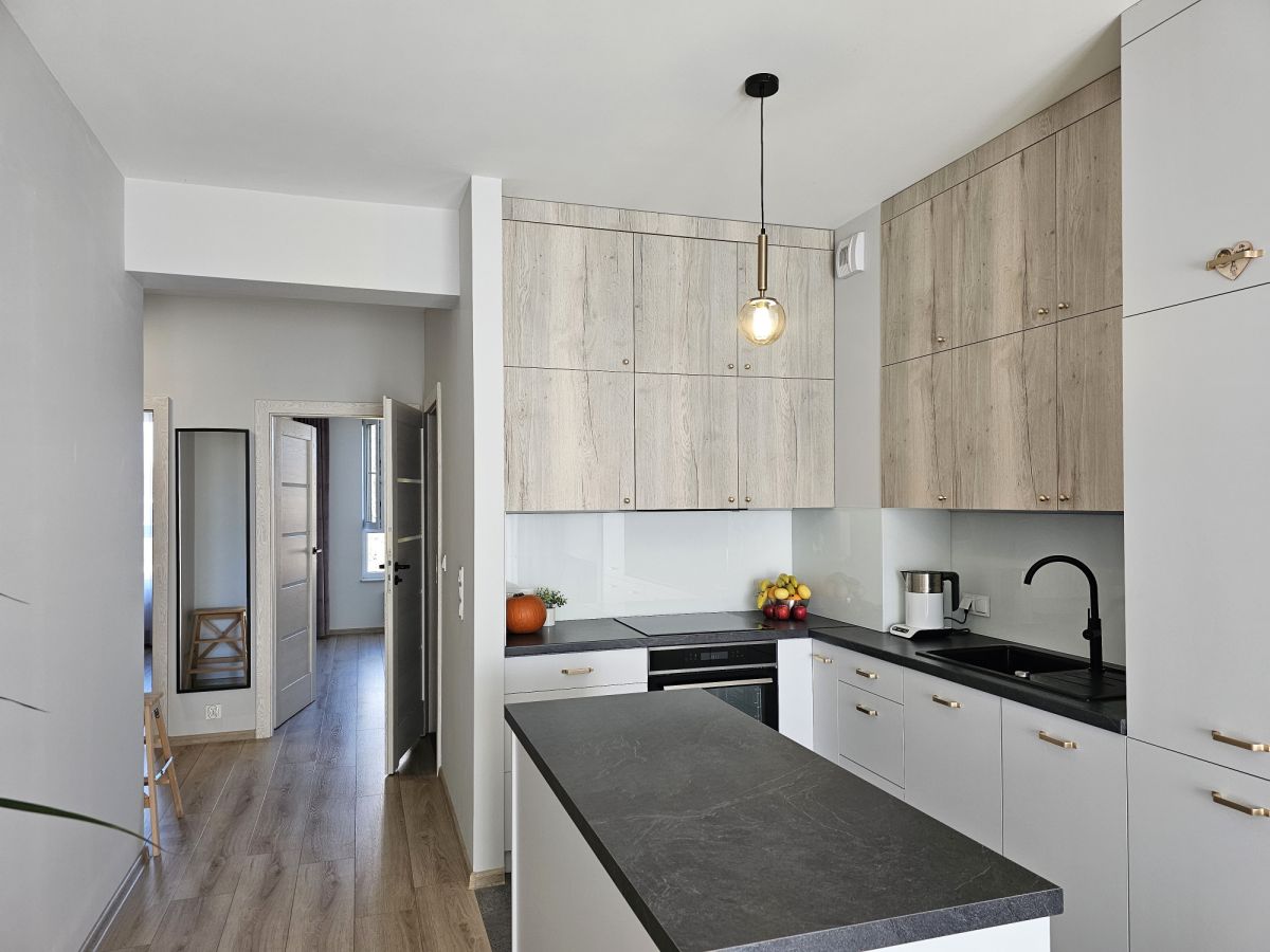 Bardzo ładnie urządzone w stonowanej kolorystyce, wyposażone - pełna zabudowa kuchni, duża szafa w przedpokoju, meble w łazience.