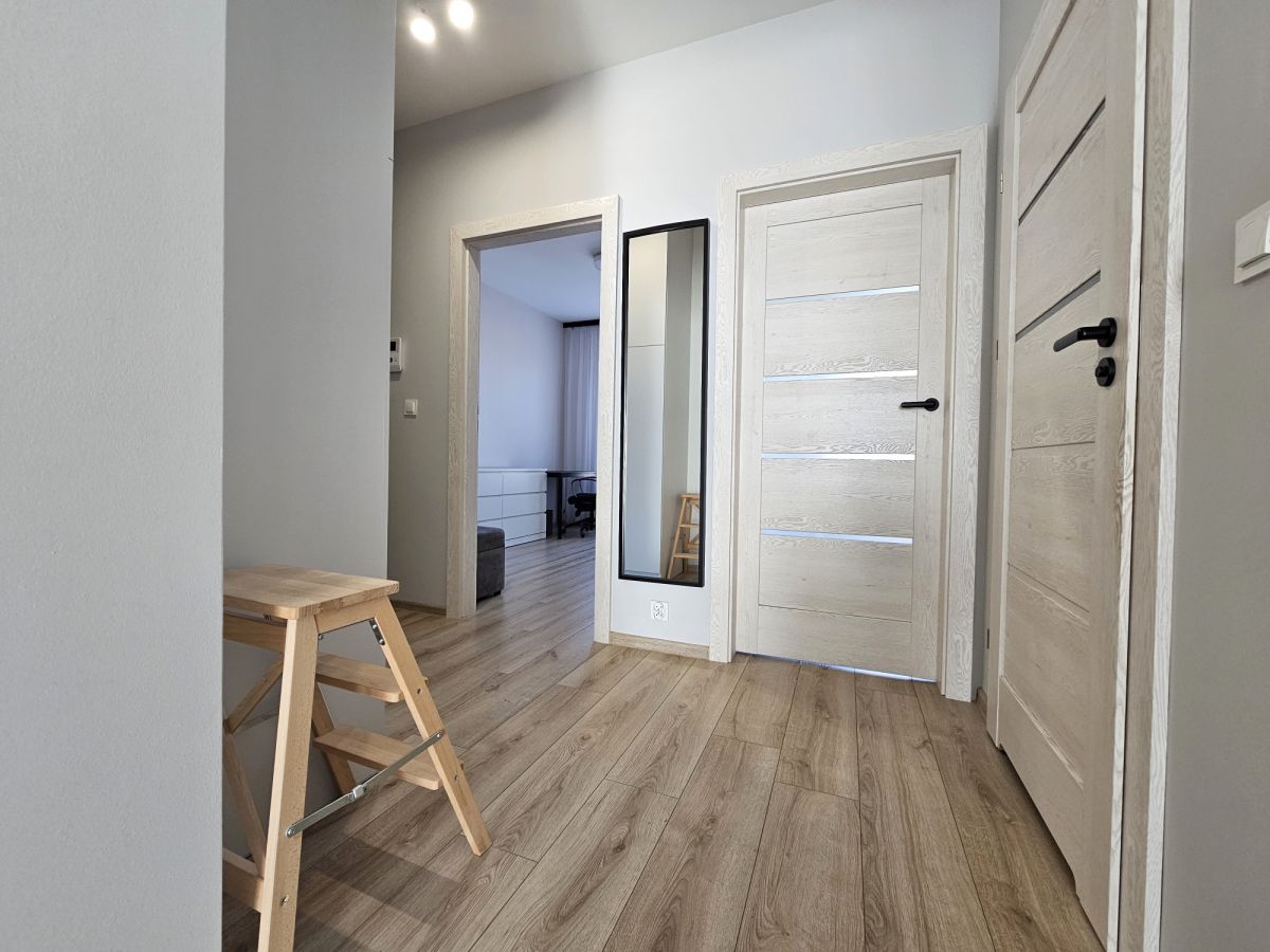 Mieszkanie znajduje się z dala od zgiełku ulic i miejskiego hałasu. Osiedle jest spokojne i kameralne, budynek ogrodzony i monitorowany. W okolicy znajduje się wiele udogodnień, takich jak szkoły podstawowe, przedszkola, apteki, basen i boiska sportowe, sklepy osiedlowe.