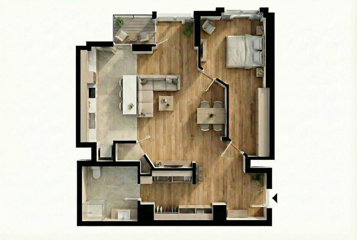 Dzięki funkcjonalnemu układowi istnieje możliwość wydzielenia trzeciego pokoju, co znacząco zwiększa potencjał mieszkania!