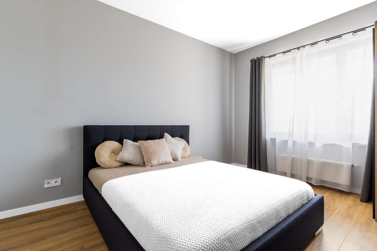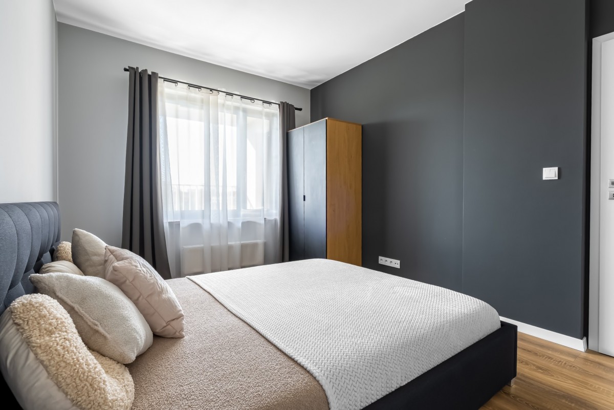 - W sypialni znajduje się wygodne łóżko z szafą do przechowywania odzieży.
