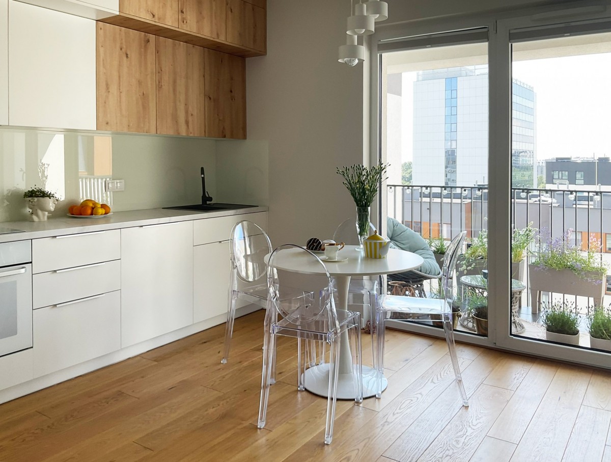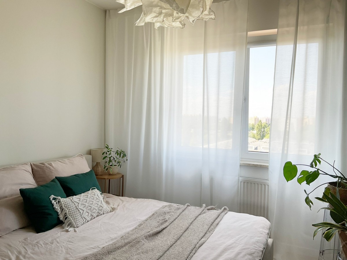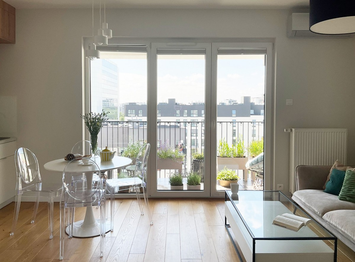 3-pokojowe mieszkanie wykończone materiałami premium z ładnym widokiem na Warszawę.