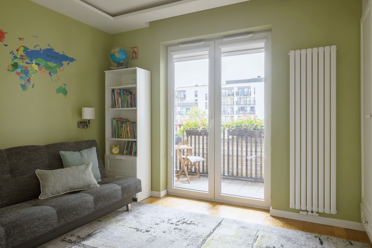 W mieszkaniu znajduje się wiele szaf w zabudowie, oferujących dużo miejsca do przechowywania.