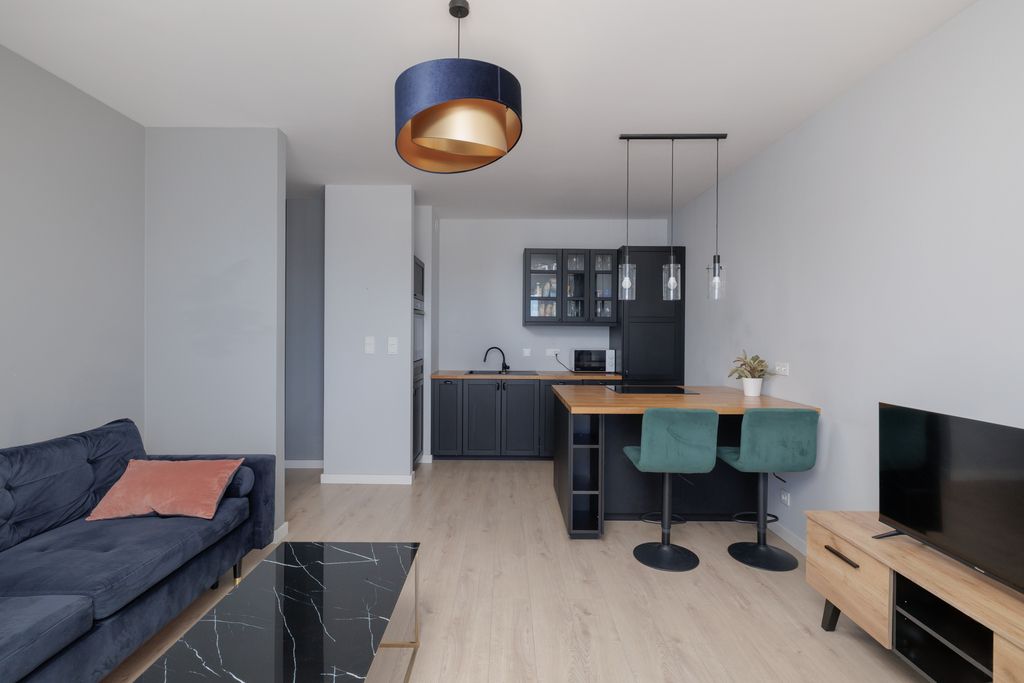 Bardzo dobry standard wykończenia: mieszkanie jest wyposażone we wszystko czego trzeba, aby czuć się komfortowo. Dodatkowo jest klimatyzacja. Przestrzenna łazienka (3,5 mkw) z gustowną glazurą i pralką , 2 pokoje z metrażem 10 i 25 mkw oraz balkon ok. 4 mkw . W przedpokoju znajduje się zabudowana szafa.