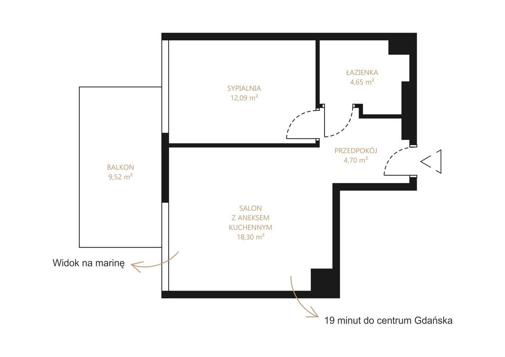 - Doskonała komunikacja z głównymi trasami turystycznymi Trójmiasta i wybrzeża