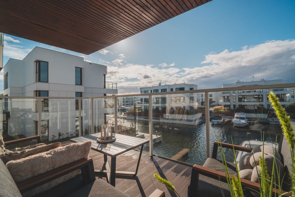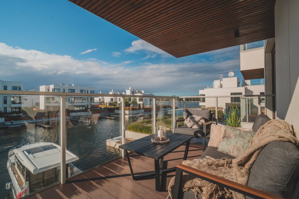 - Taras (ok. 9,5m²): przestronny, idealny na poranną kawę i relaks przy widoku na wodę.